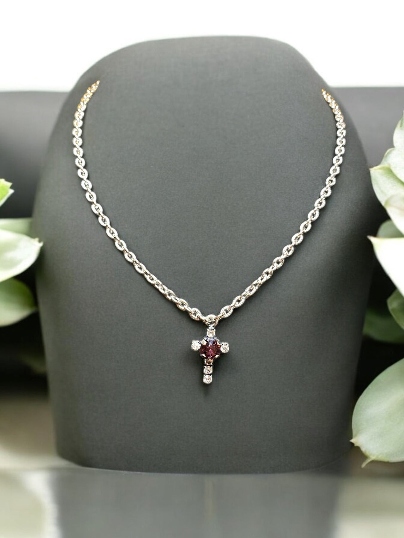• Cross on necklace is antique silver with 6mm Amethyst Crystal in center along with 6 rhinestones in clear