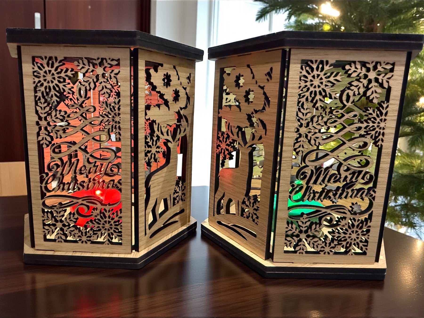 This stunning lantern is made of real high-quality wood and is handmade in the USA. It is 3D piece and is available in maple or walnut wood with either a red or green battery-powered tea light. Each wood layer is individually laser-cut and then attached to form this beautiful, one-of-a-kind piece.