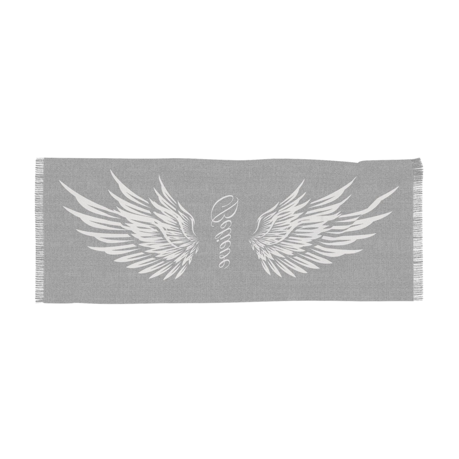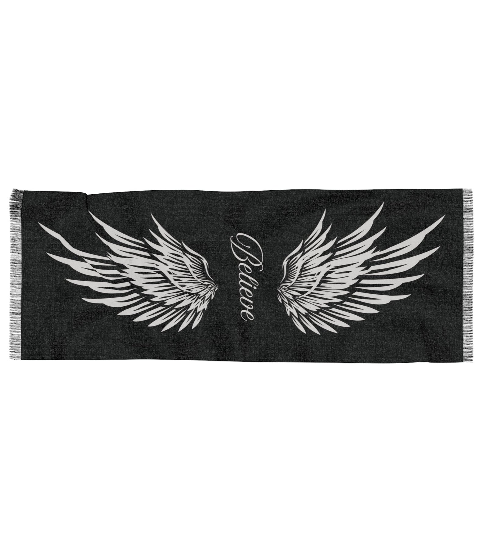 Believe With Angel Wings - Black - Semi-Translucent Lightweight Inspirational Wrap Scarf