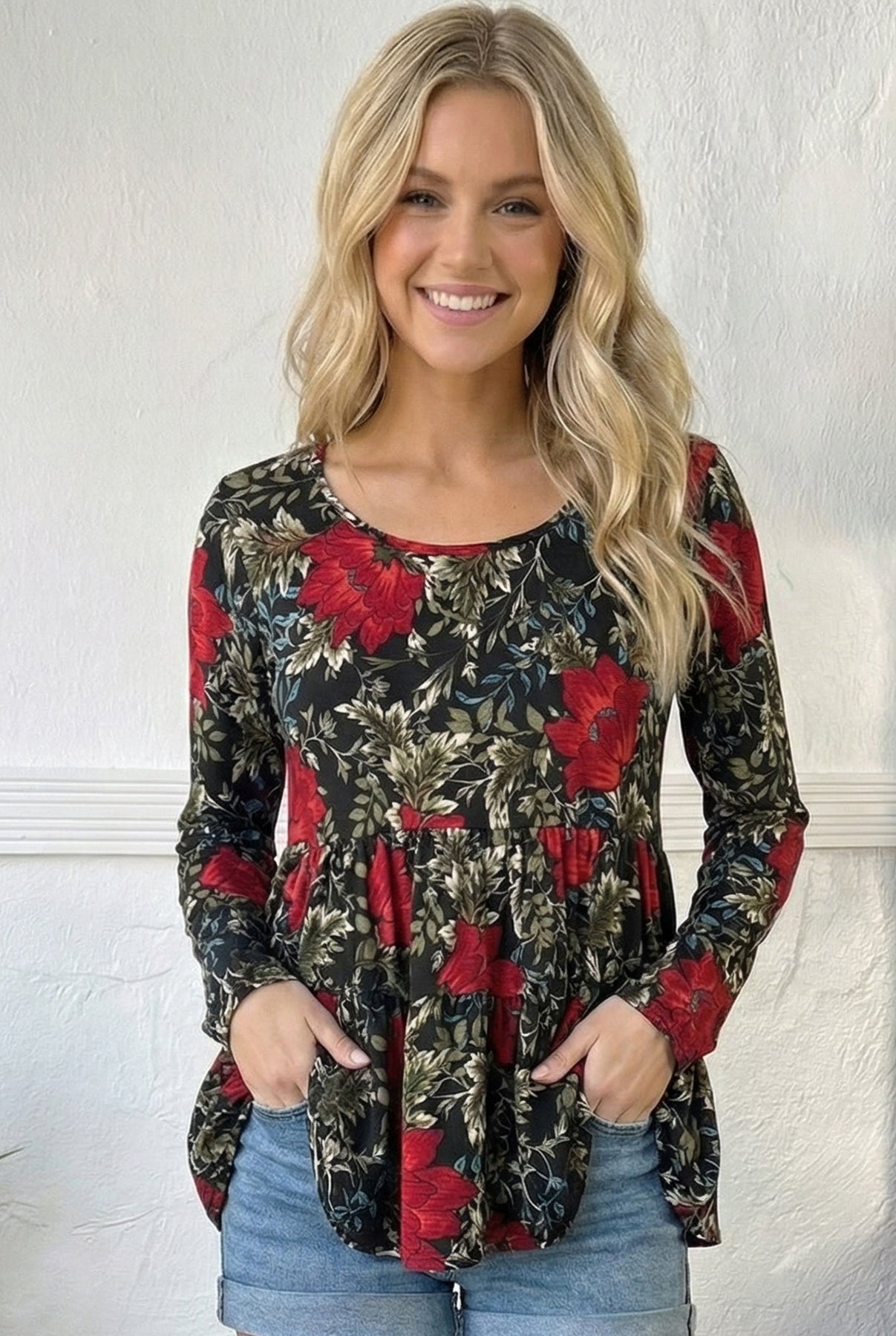 This charming babydoll top pairs eye-catching floral patterns with an effortlessly wearable design. Featuring a graceful scoop neckline, extended sleeves, and a gently gathered empire waist, it drapes beautifully while keeping you comfortable all day long. The vibrant botanical print makes a fun statement without demanding a complicated outfit—throw it on with your favorite jeans, casual shorts, or layer it under a blazer for instant polish. It's the kind of piece that feels both put-together and playfully carefree.