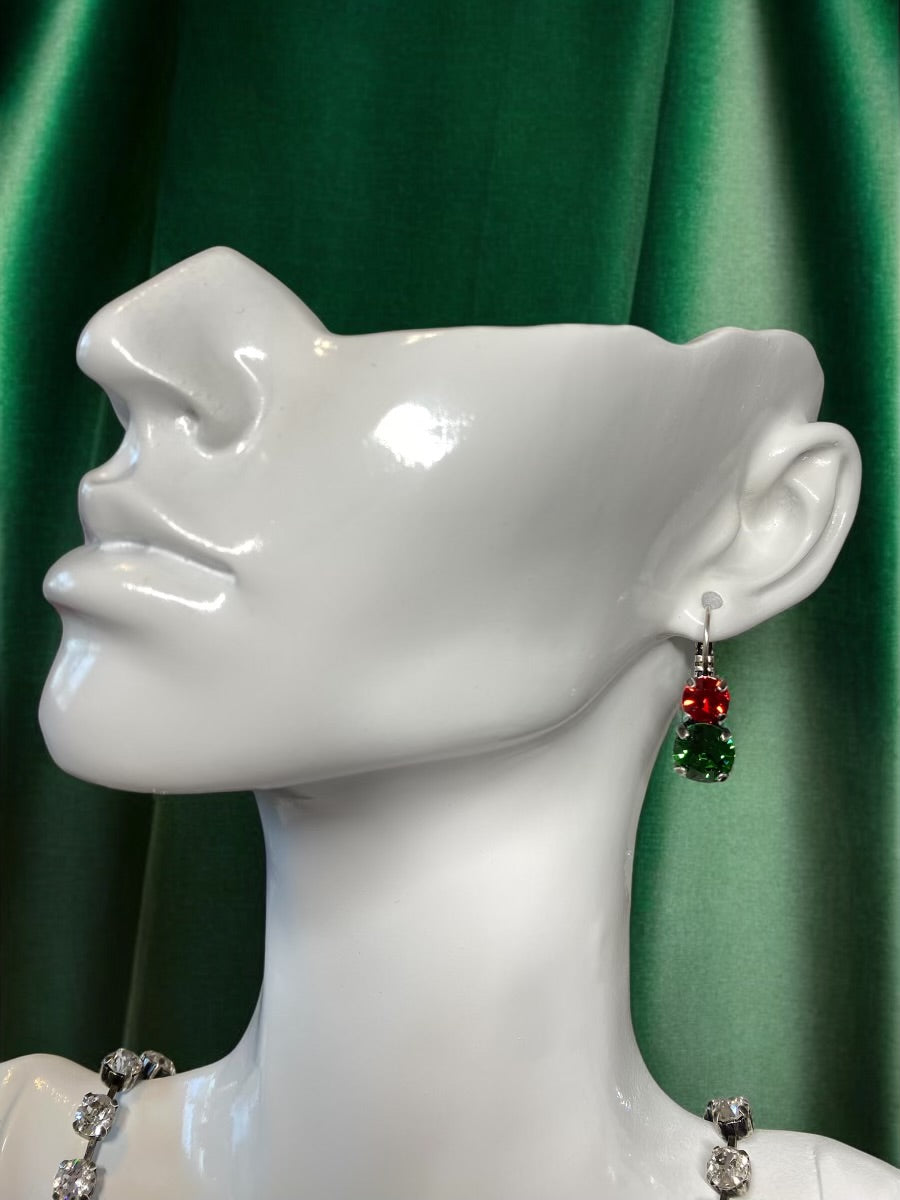 [PRE-ORDER] 2-Stone Red/Green Christmas-Themed Earrings [SHIPS in 1-2 WEEKS]