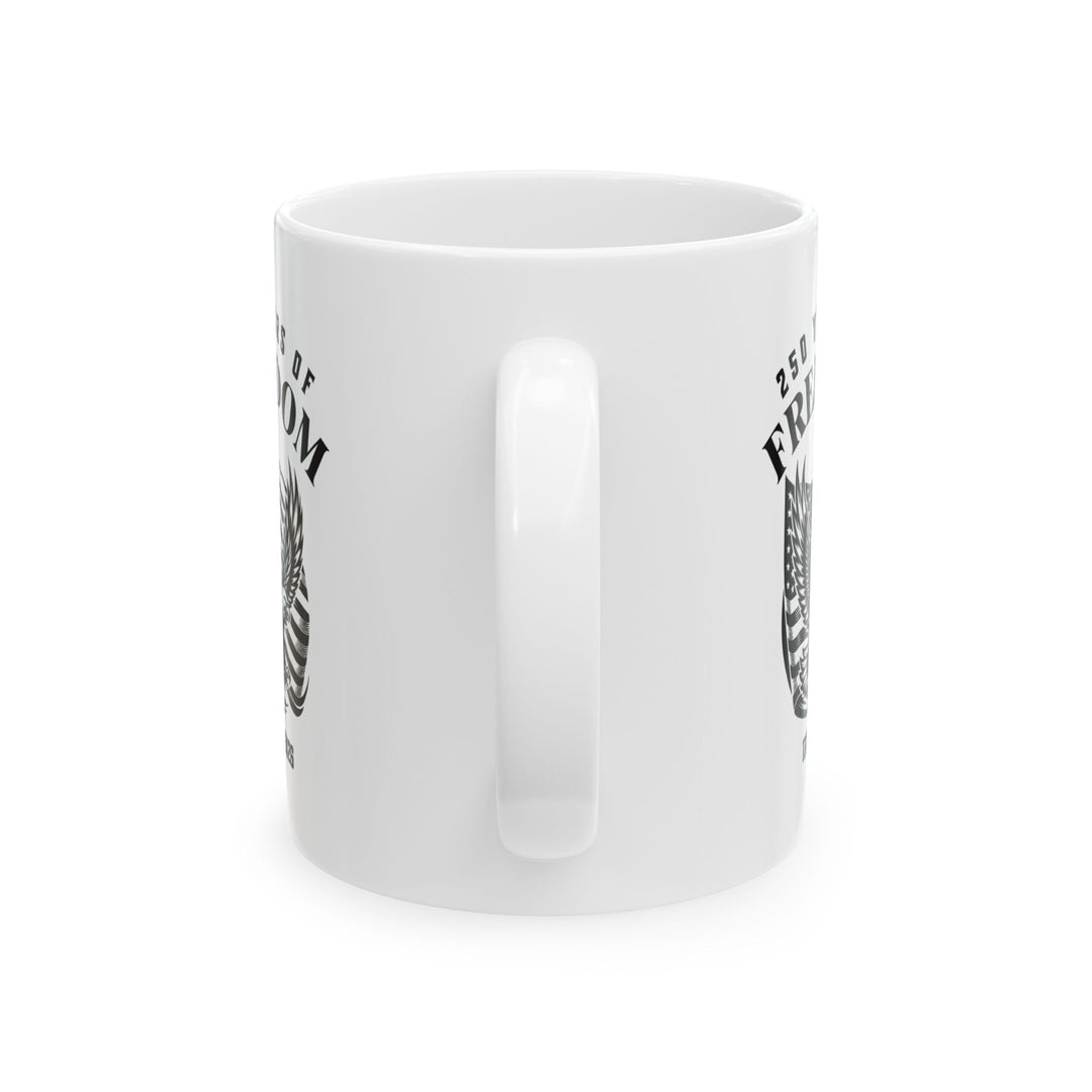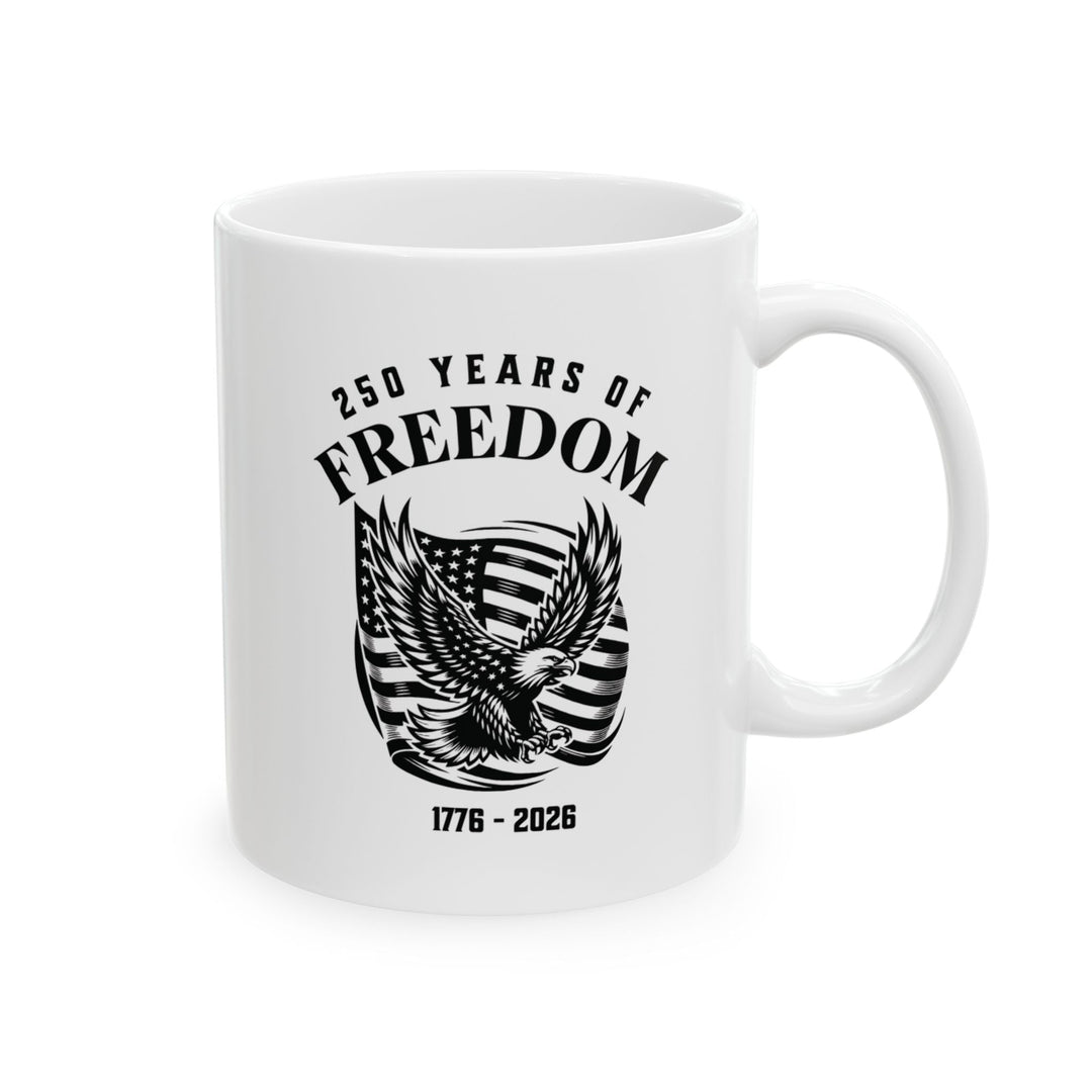 250 Years Of Freedom 1776-2026 - USA Flag With Eagle Design - White Ceramic Mug (2 Sizes: 11oz + 15 oz)