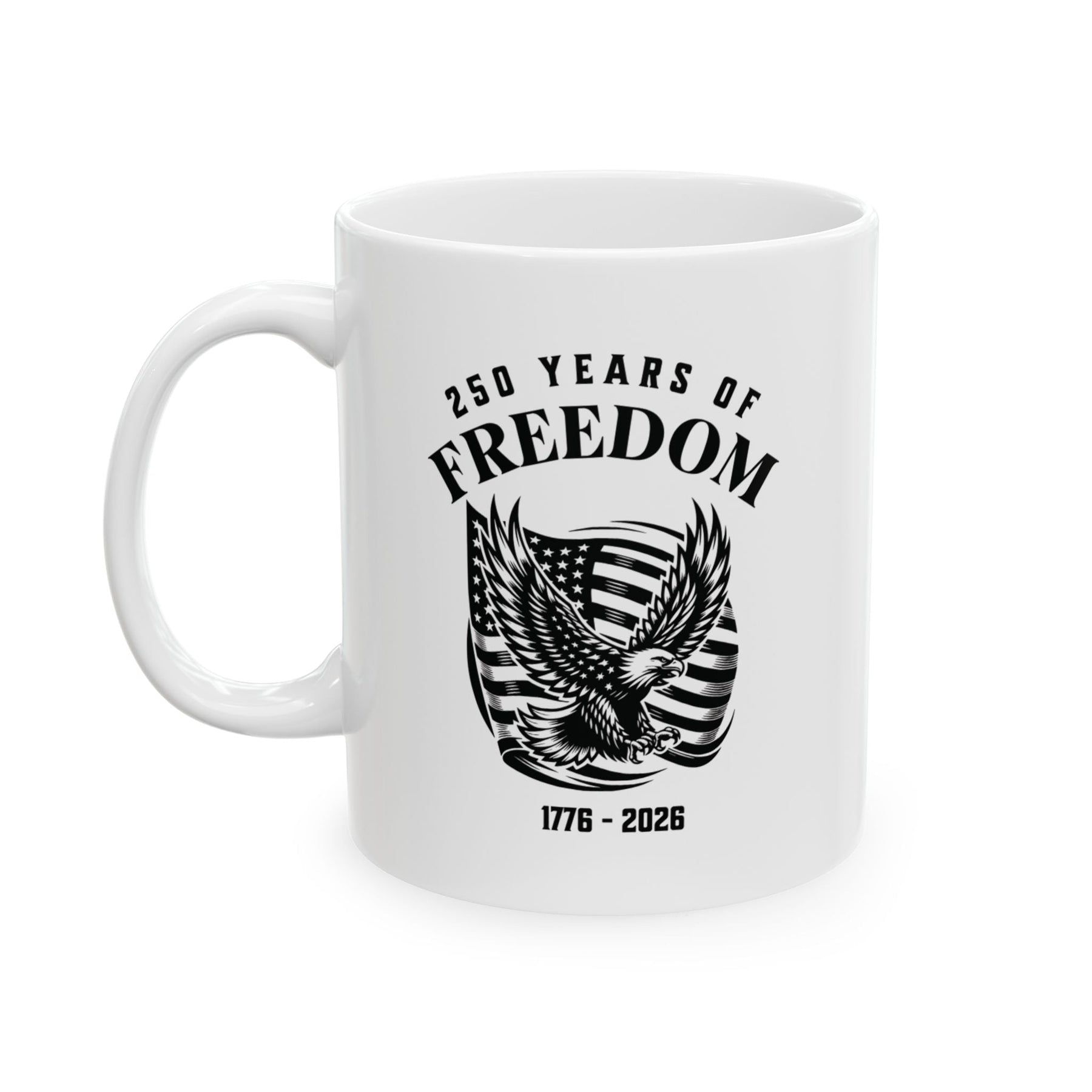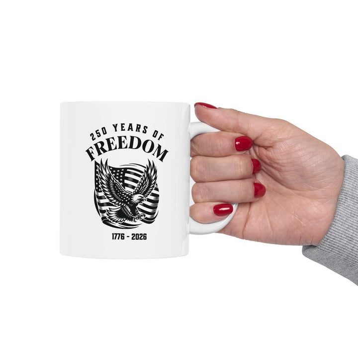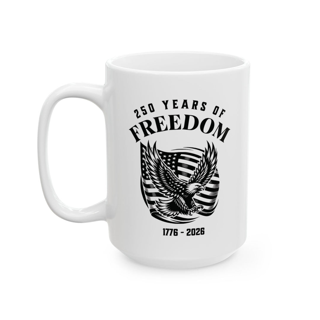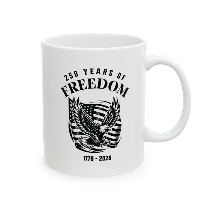 250 Years Of Freedom 1776-2026 - USA Flag With Eagle Design - White Ceramic Mug (2 Sizes: 11oz + 15 oz)   Mug Joy & Country