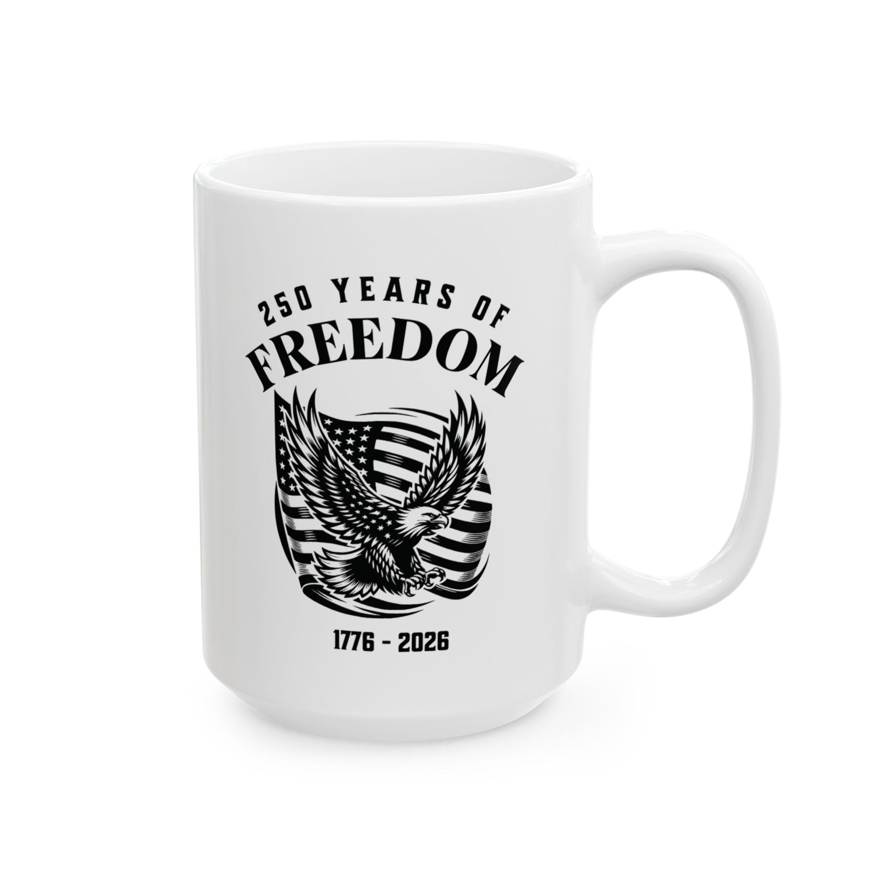 250 Years Of Freedom 1776-2026 - USA Flag With Eagle Design - White Ceramic Mug (2 Sizes: 11oz + 15 oz)   Mugs Joy & Country