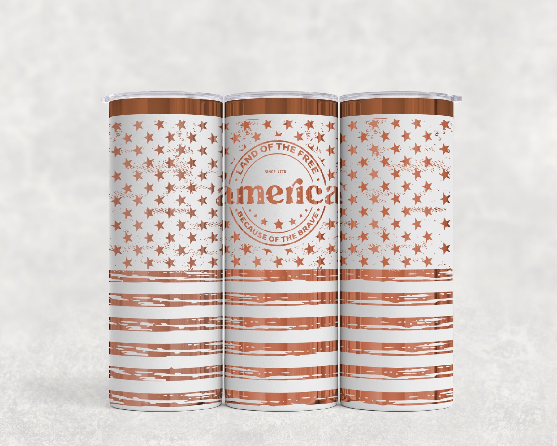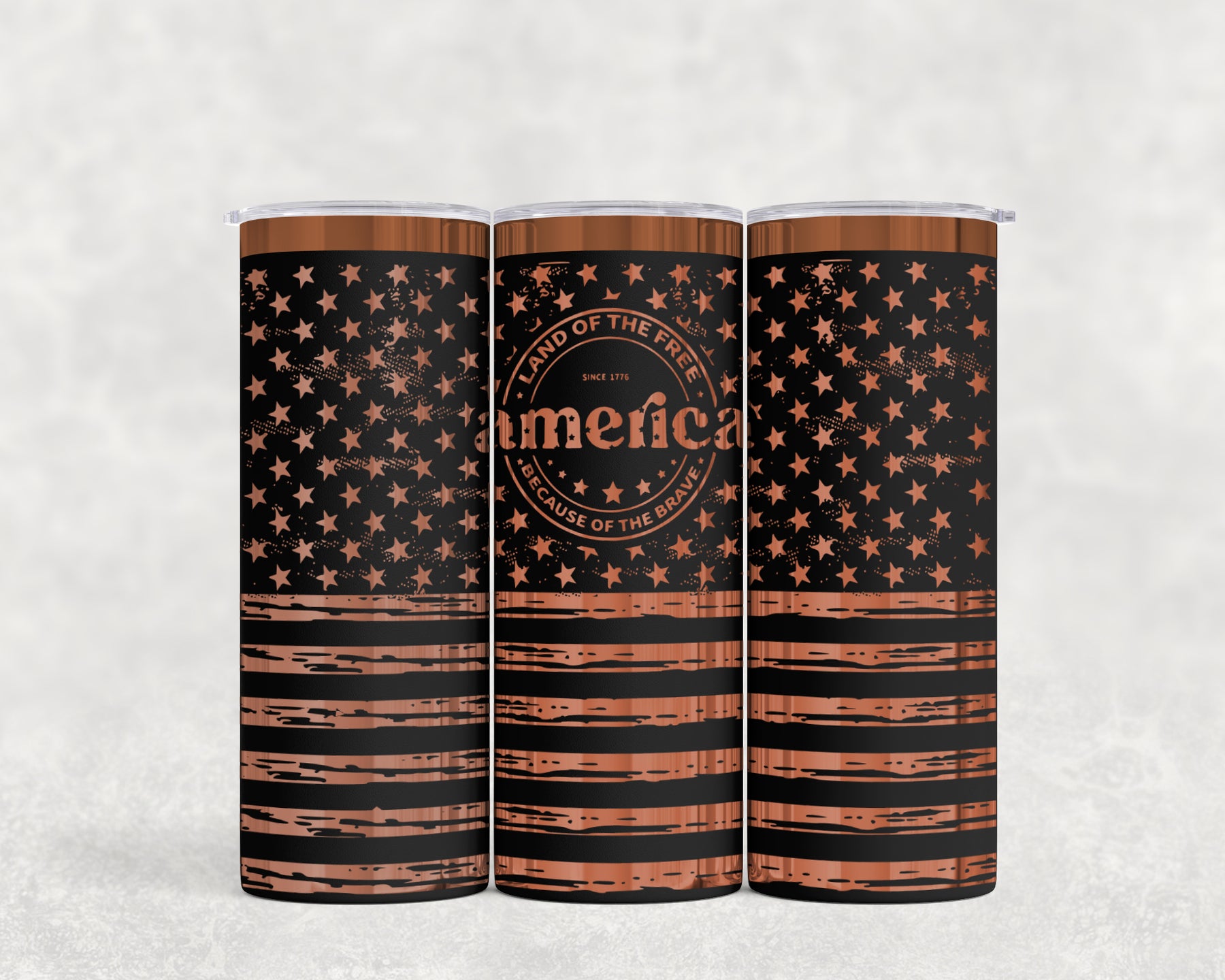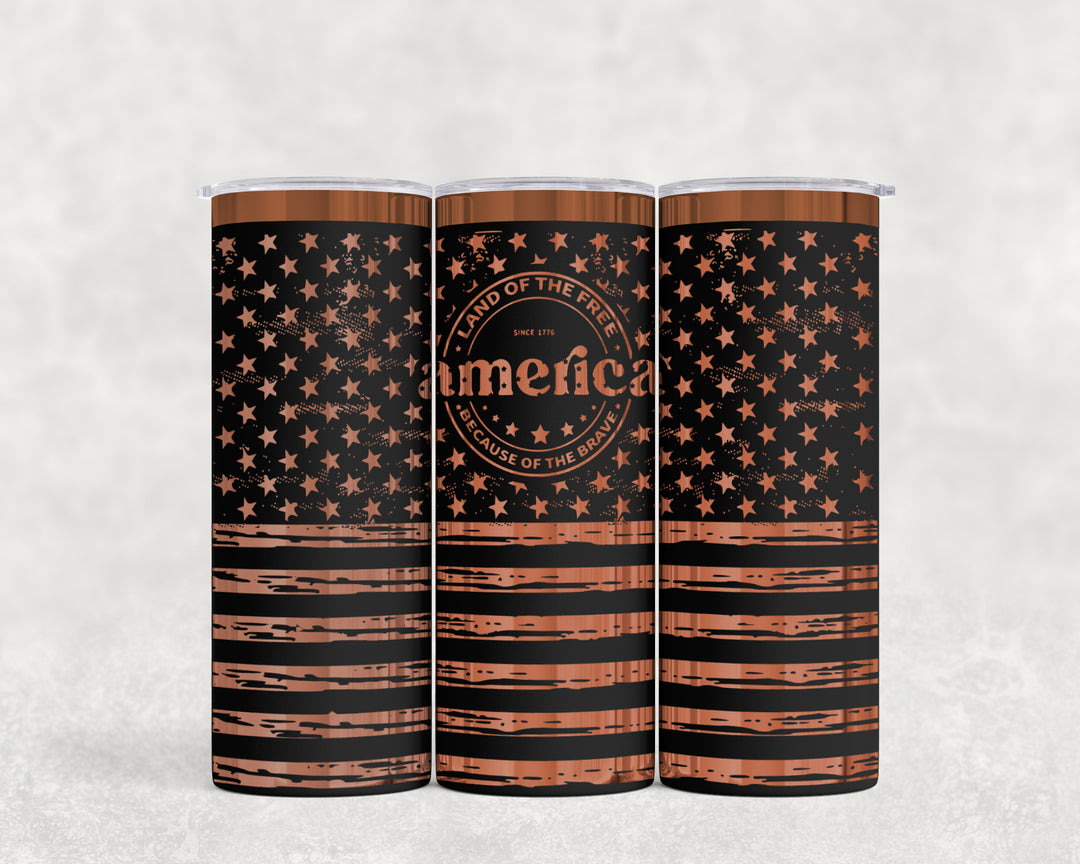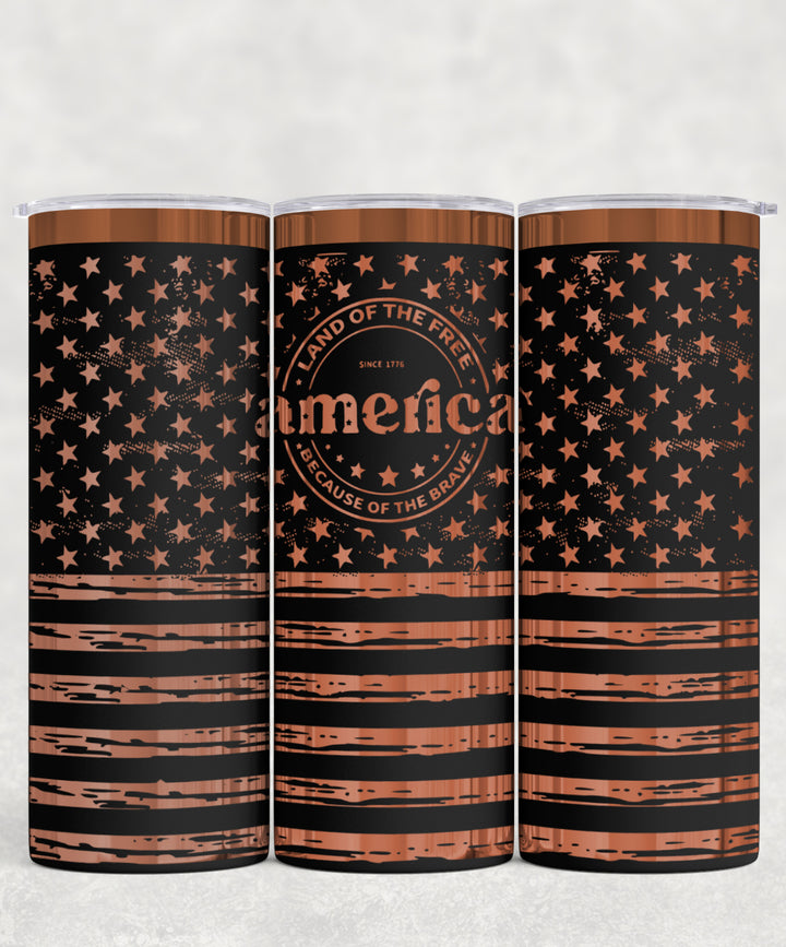[PRE-ORDER] America - Land Of The Free (Premium Copper) - 20 oz. Stainless Steel Laser-Engraved Skinny Tumbler [SHIPS IN 1-2 WEEKS]