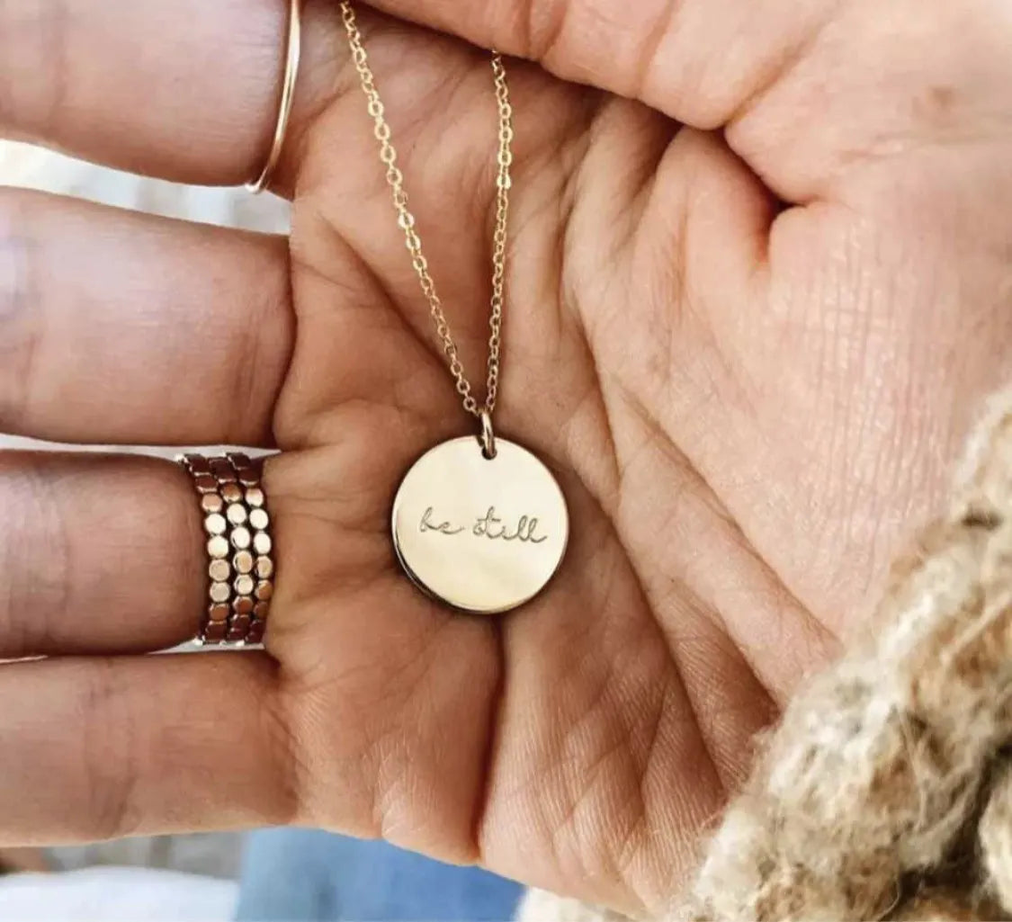 Find God's peace and strength in every moment with the “Be Still, And Know That I Am God” Stainless Steel Necklace. This elegant piece features a beautifully engraved "be still" pendant, serving as a daily reminder to pause, trust, and embrace The Holy Spirit as inspired by Psalm 46:10. Available in both classic silver and radiant gold, this versatile necklace complements any style, whether worn alone or layered. Let this timeless piece keep you grounded in faith and mindfulness throughout your day.