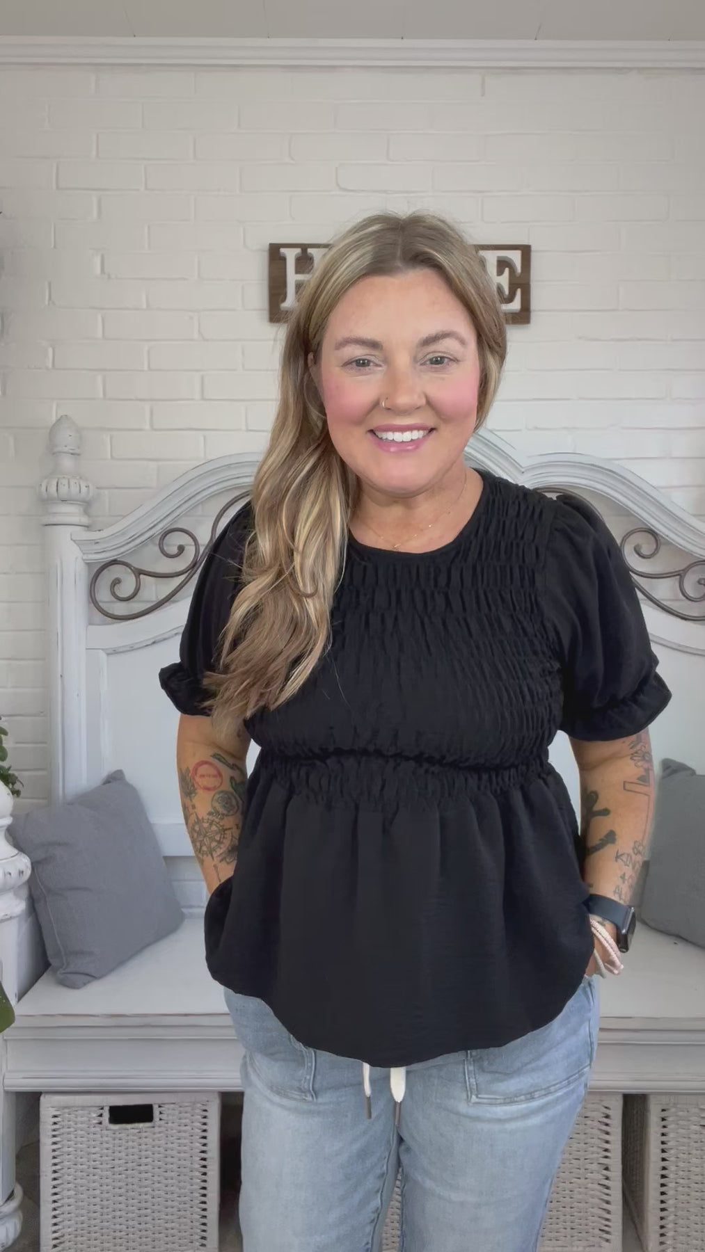 Eyes On You - Smocked Peplum Blouse - Black - Joy & Country