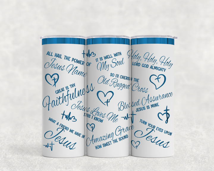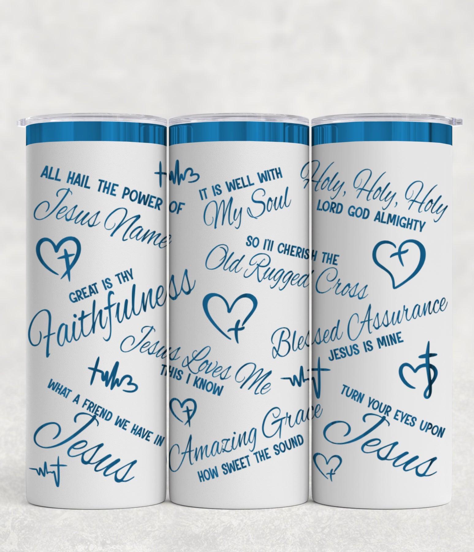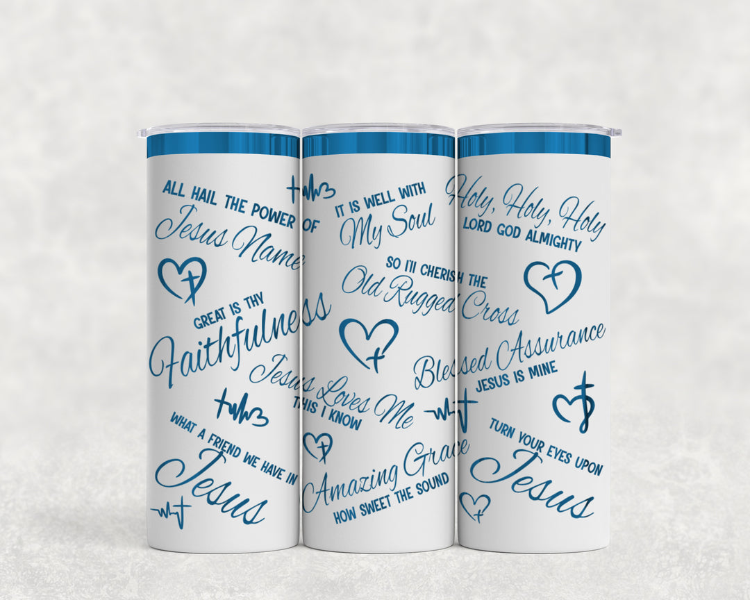 [PRE-ORDER] Blessed Church Hymns (Premium Blue) - 20 oz. Stainless Steel Laser-Engraved Skinny Tumbler [SHIPS IN 1-2 WEEKS]