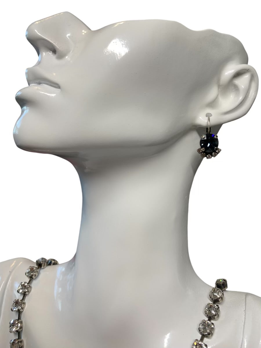 Blue Crystal/Rhinestones - Lever-Back Dangle Earrings