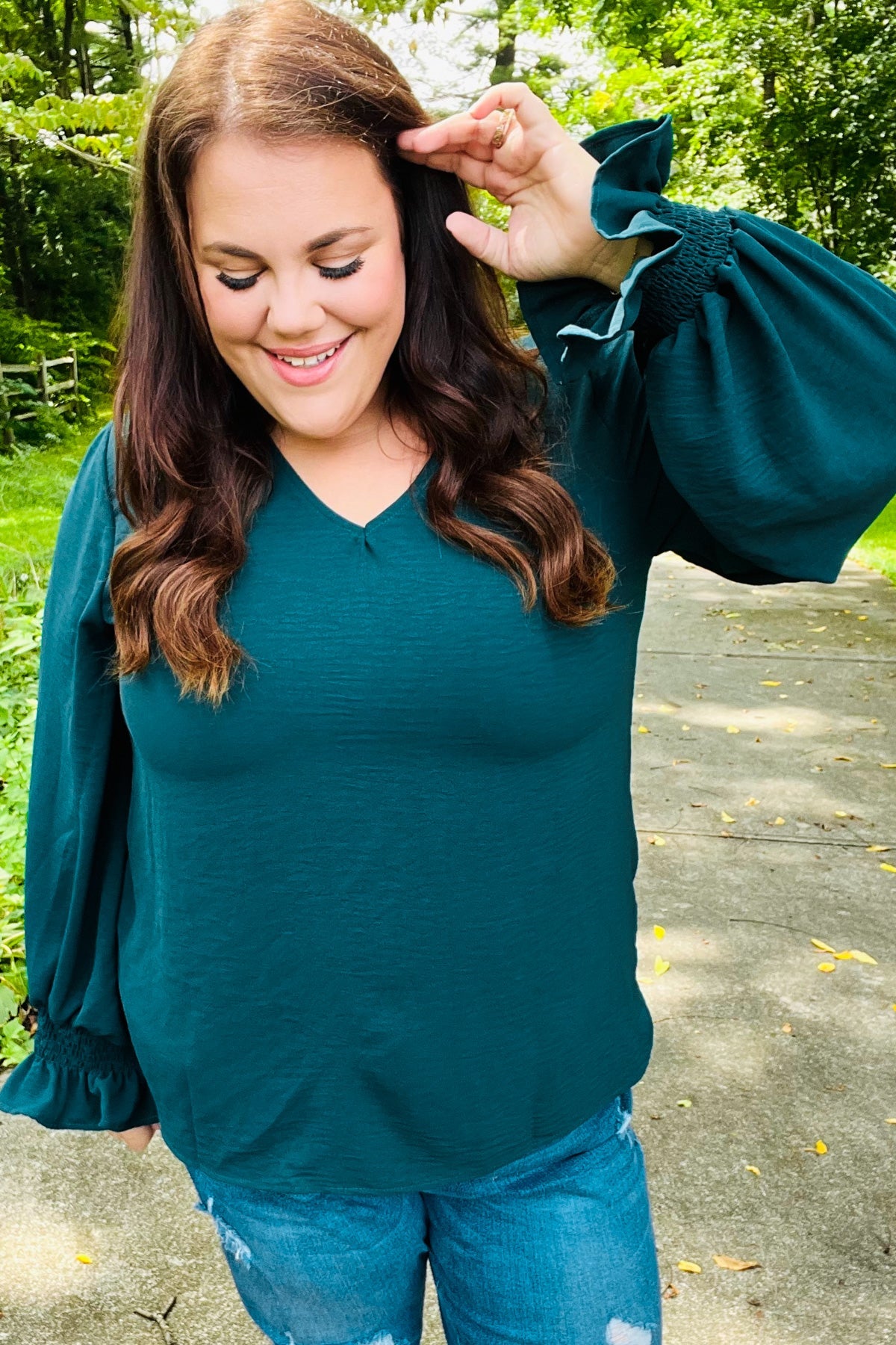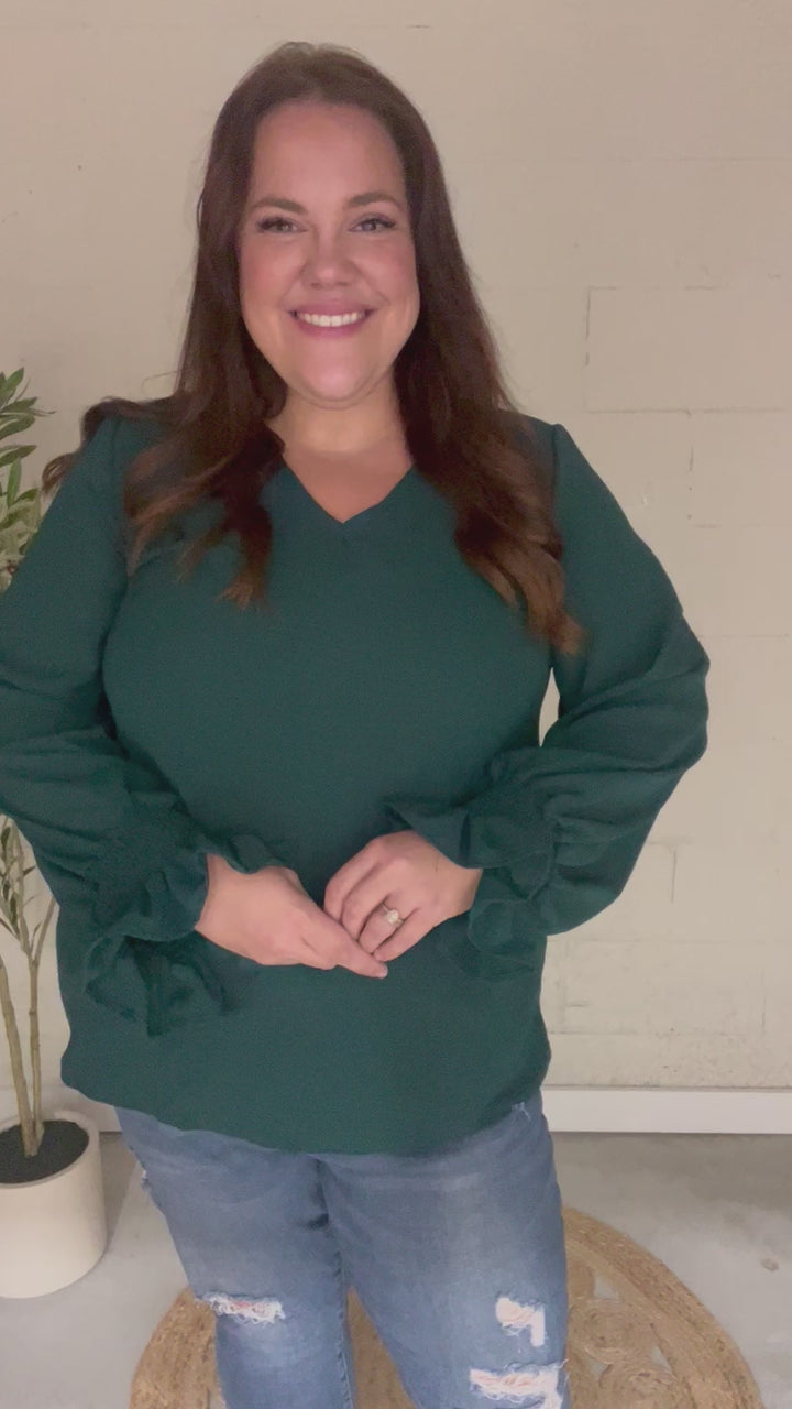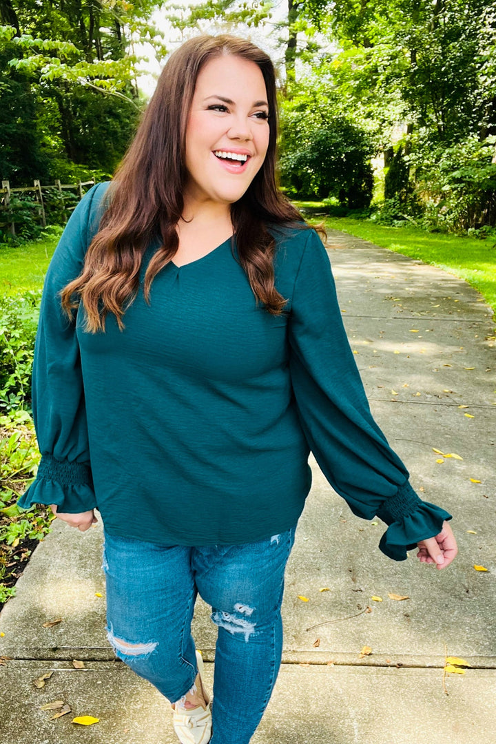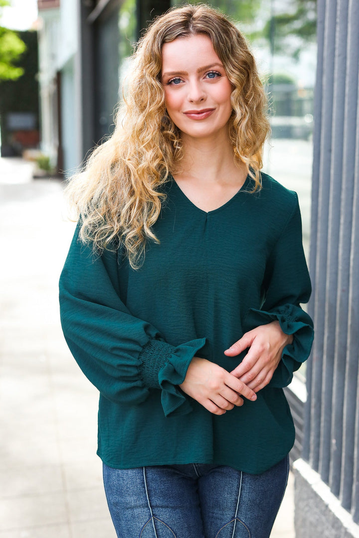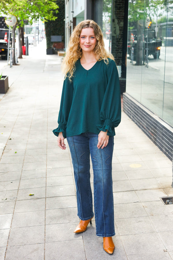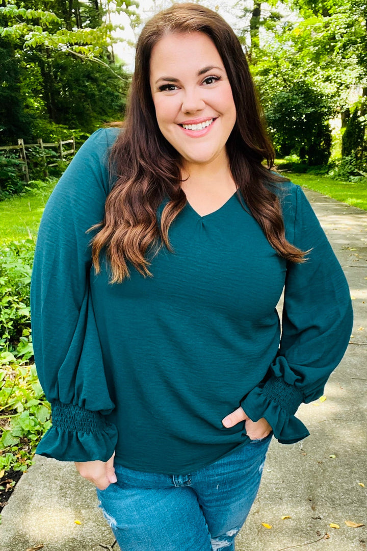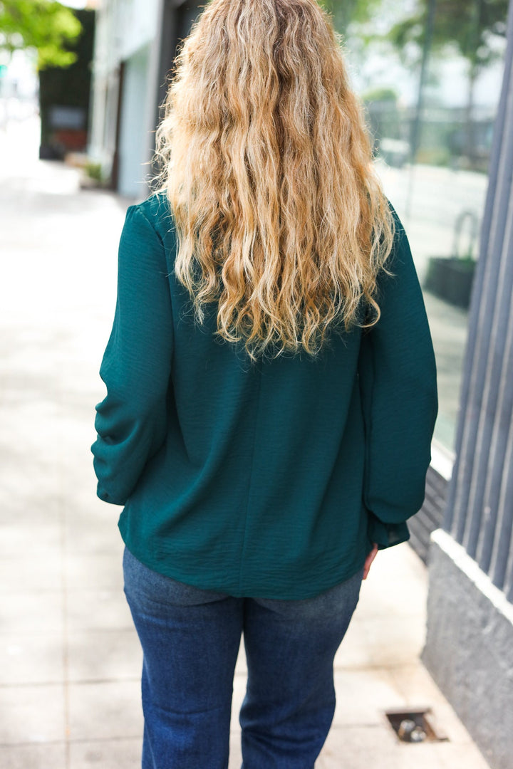 [FINAL SALE] Classic Lines - Bubble-Sleeve Top - Hunter Green