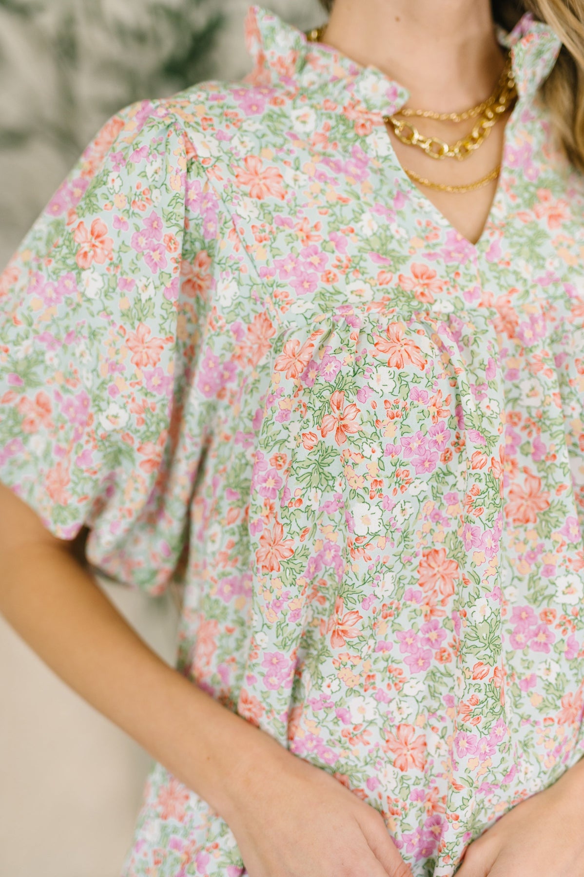Botanical Charm Notch Neck Blouse