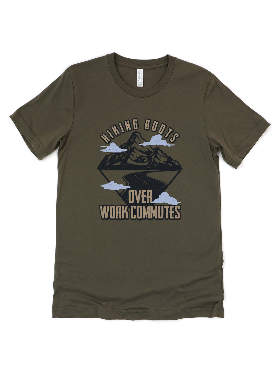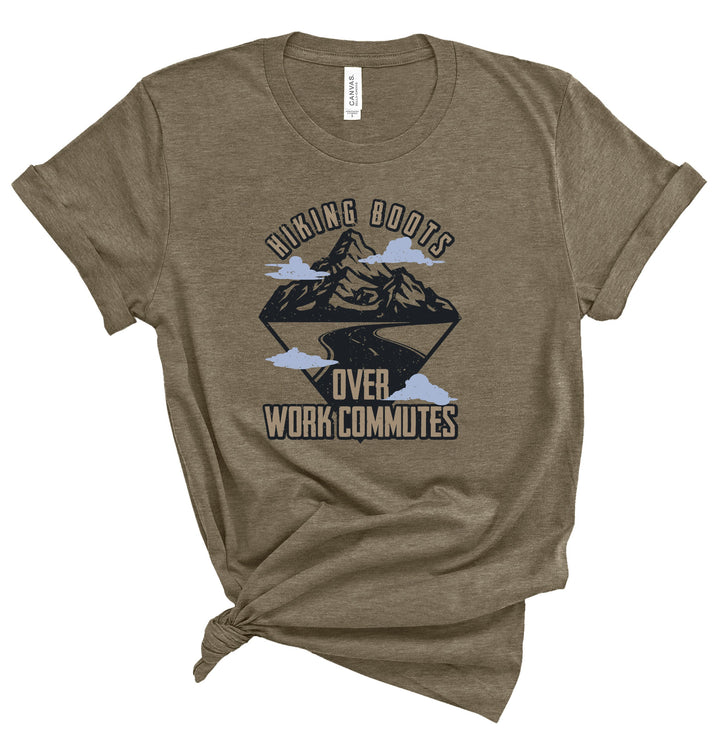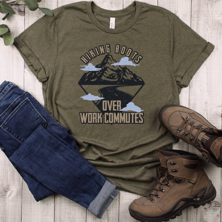 Hiking Boots Over Work Commutes - Unisex Crew-Neck Tee
