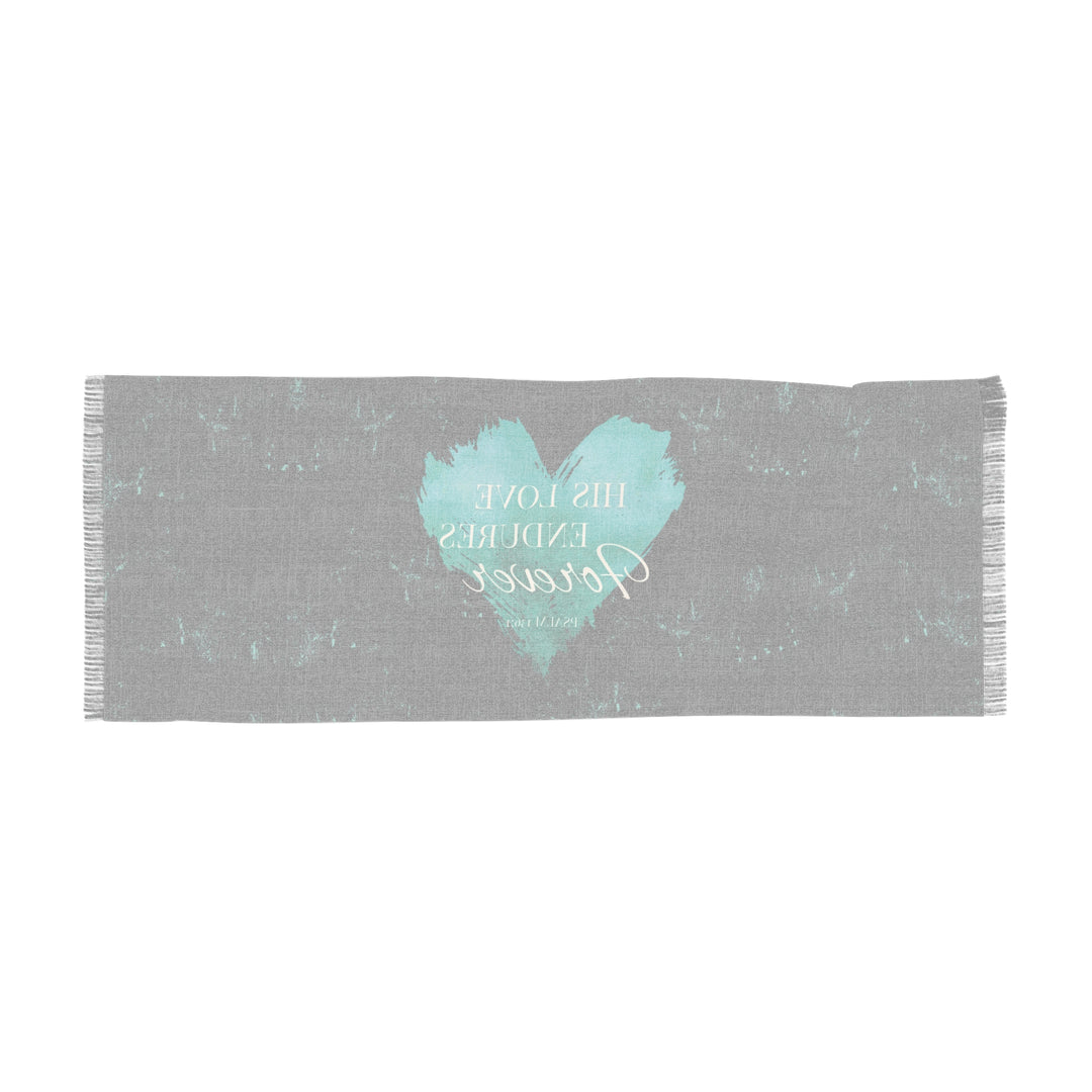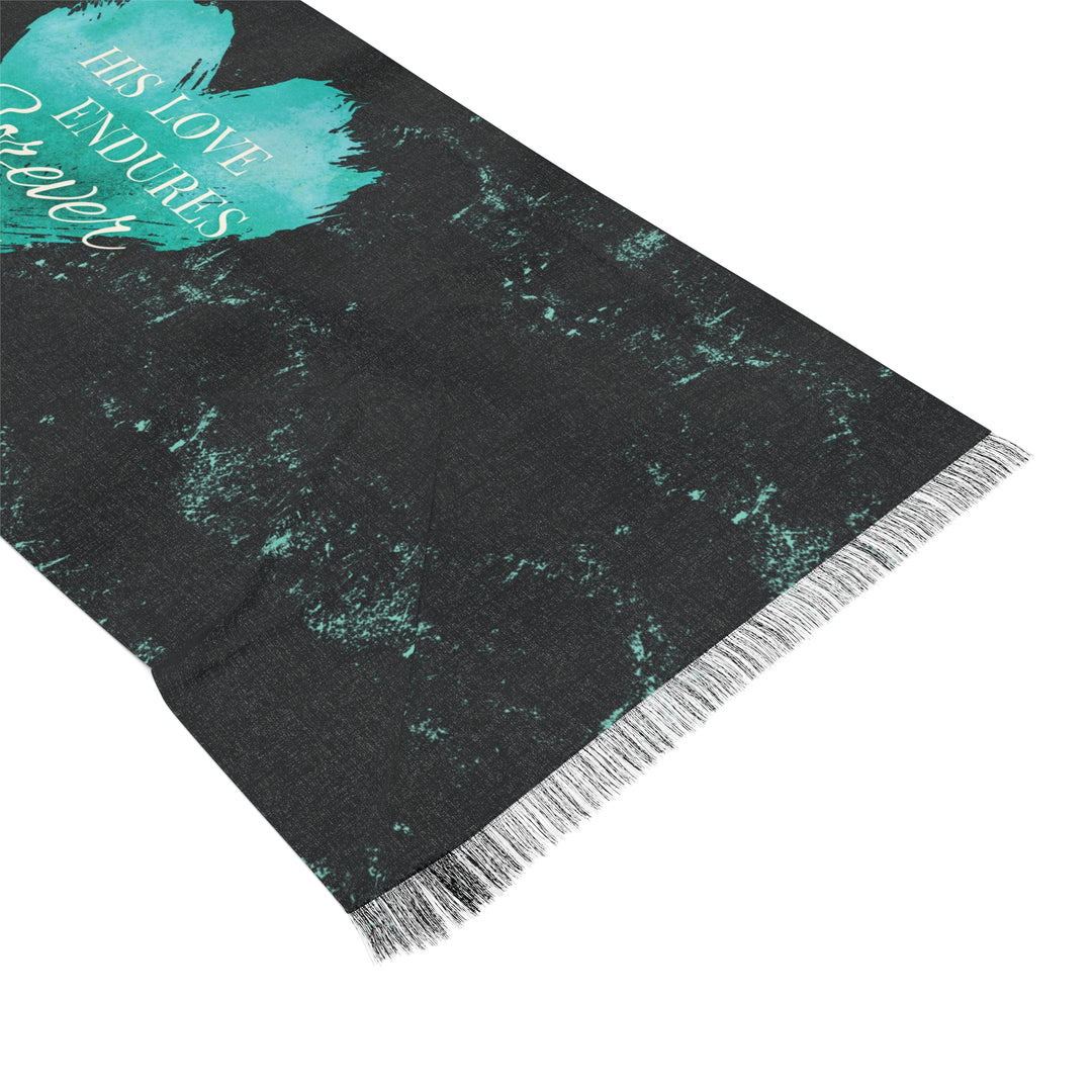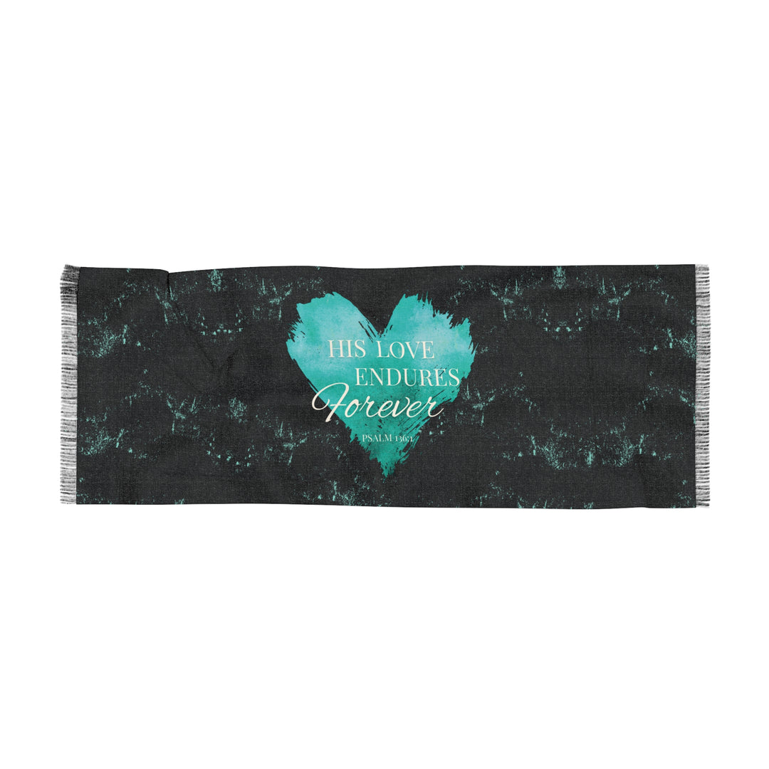 His Love Endures Forever Psalm 136:1 Teal Heart - Semi-Translucent Lightweight Inspirational Wrap Scarf