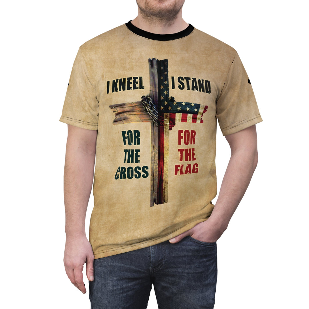 I Kneel For The Cross. I Stand For The Flag - Unisex Premium Crew-Neck Tee - JC Exclusive