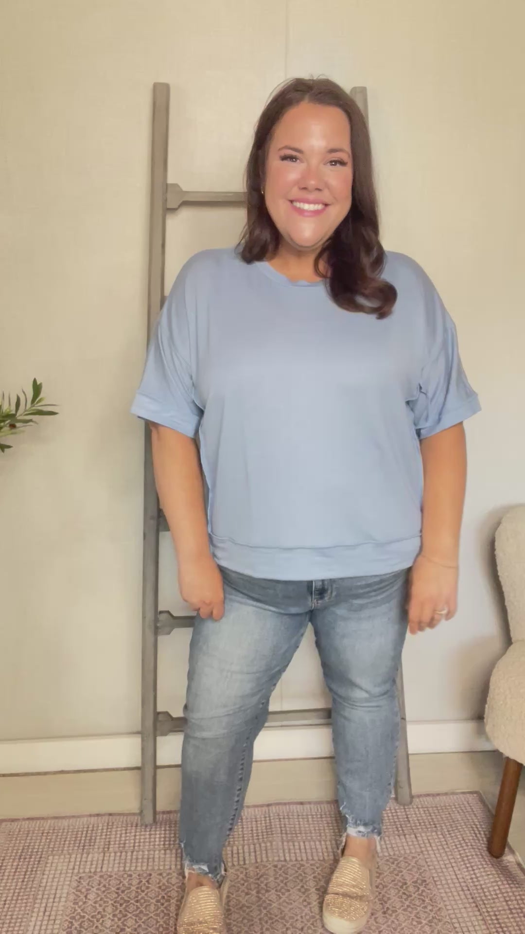 This cozy short-sleeve pullover boasts a relaxed fit with cute cap sleeves and a trendy hi-lo hem. Crafted from ultra-soft fabric and highlighted by eye-catching reverse stitching along the outseams, it’s destined to become your favorite fall essential. Perfectly pairs with all your denim favorites!
