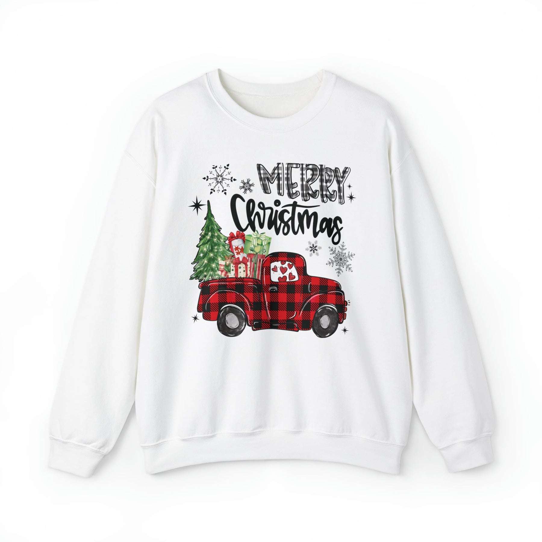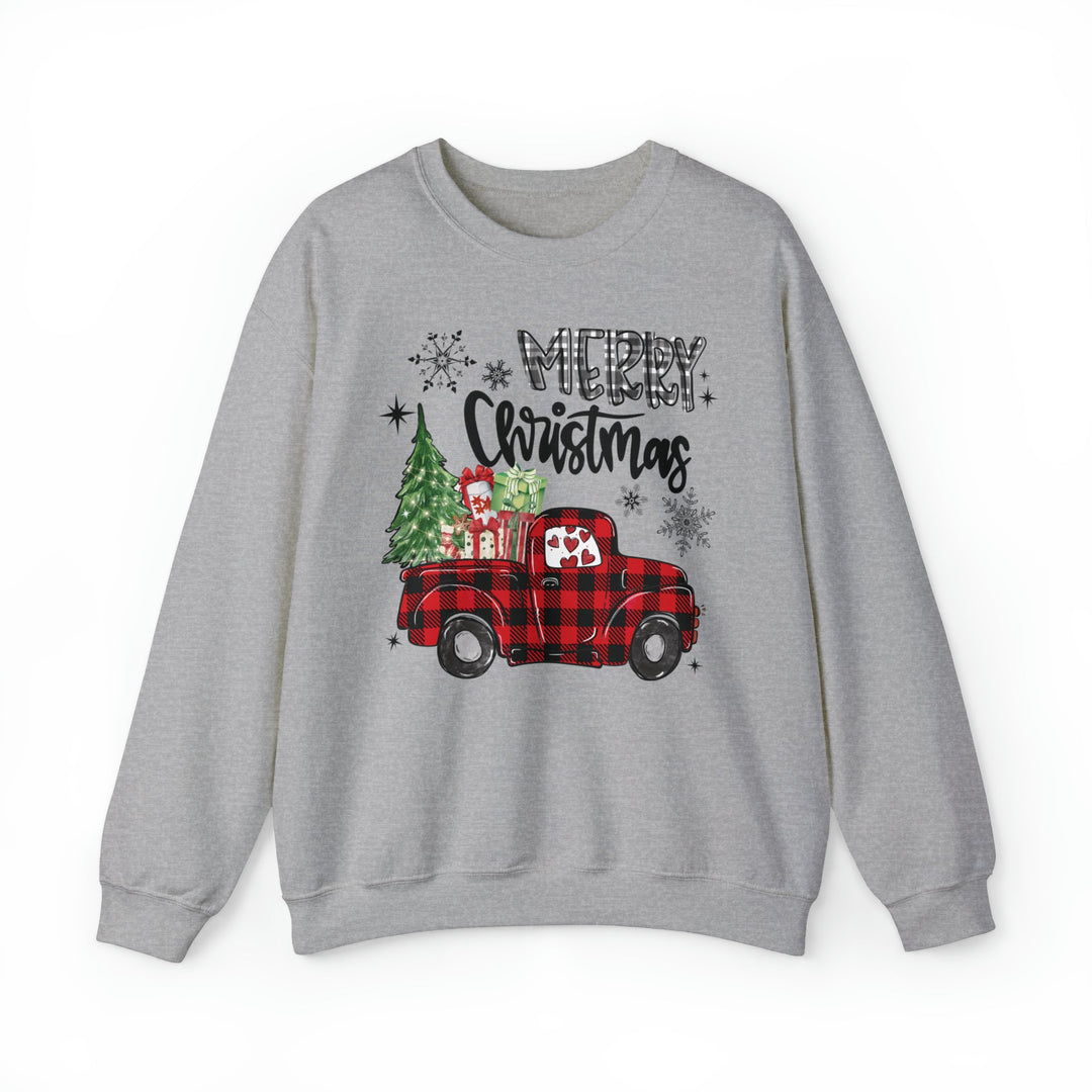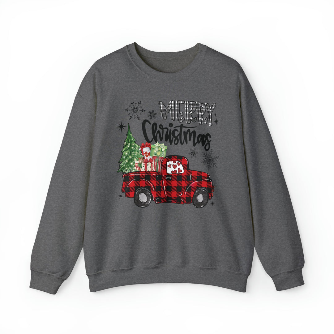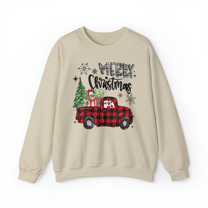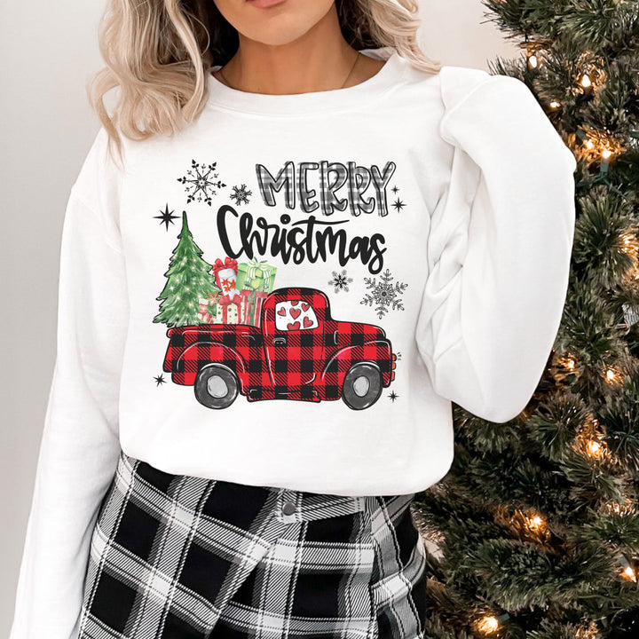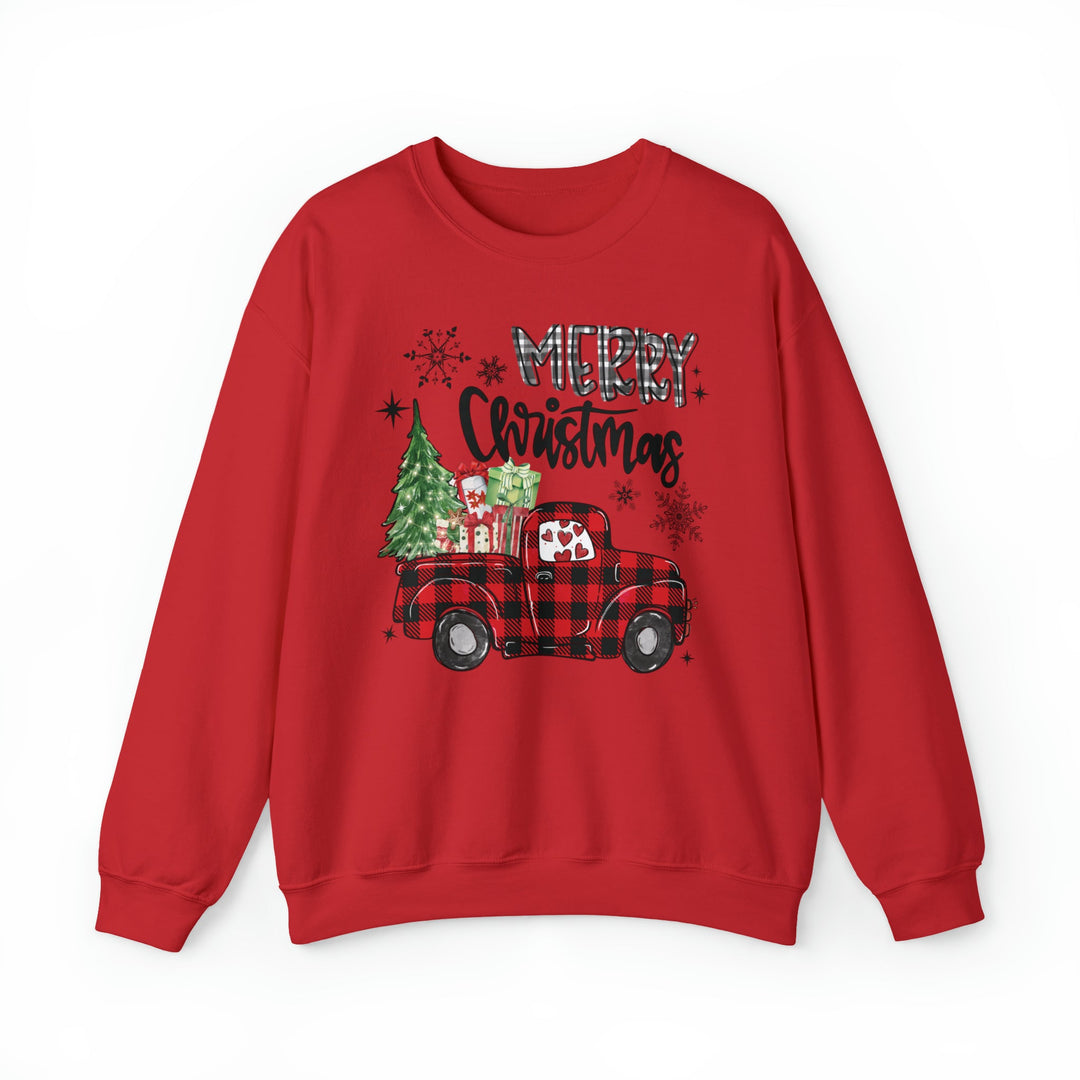 Merry Christmas Plaid Truck - Unisex Crew-Neck Sweatshirt