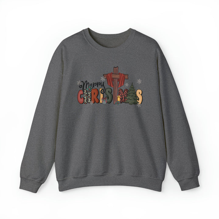 Merry Christmas With Cross - Unisex Crew-Neck Sweatshirt   Sweatshirt Joy & Country