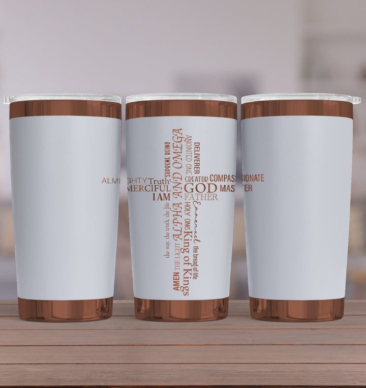 [PRE-ORDER] Names Of God Cross (Premium Copper) - 20 oz. Stainless Steel Laser-Engraved Wide Tumbler [SHIPS IN 1-2 WEEKS]