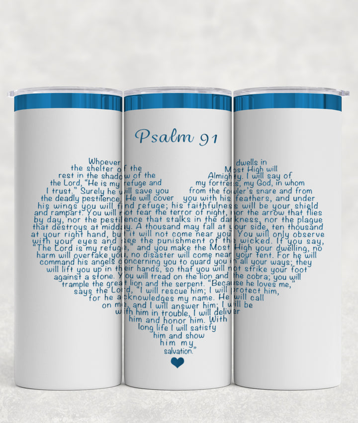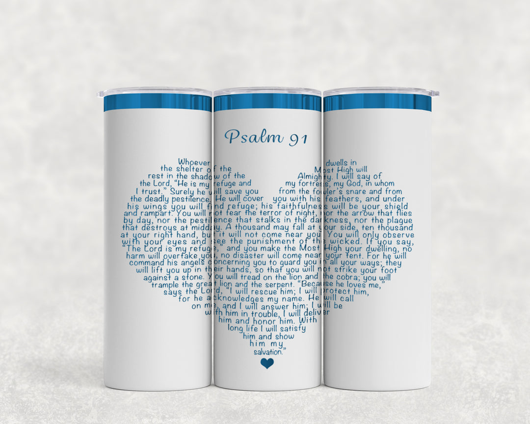 [PRE-ORDER] Psalm 91 Heart (Premium Blue) - 20 oz. Stainless Steel Laser-Engraved Skinny Tumbler [SHIPS IN 1-2 WEEKS]