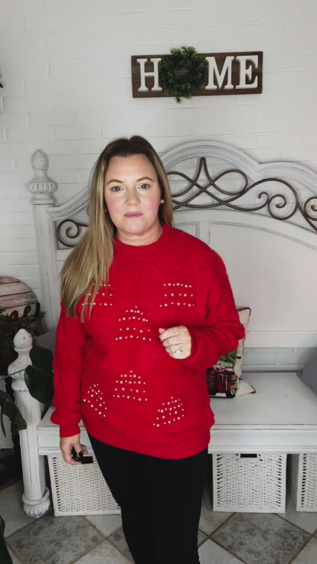 Christmas Tree + Pearls  + Round Neck + Oversized Fit  + Has Stretch