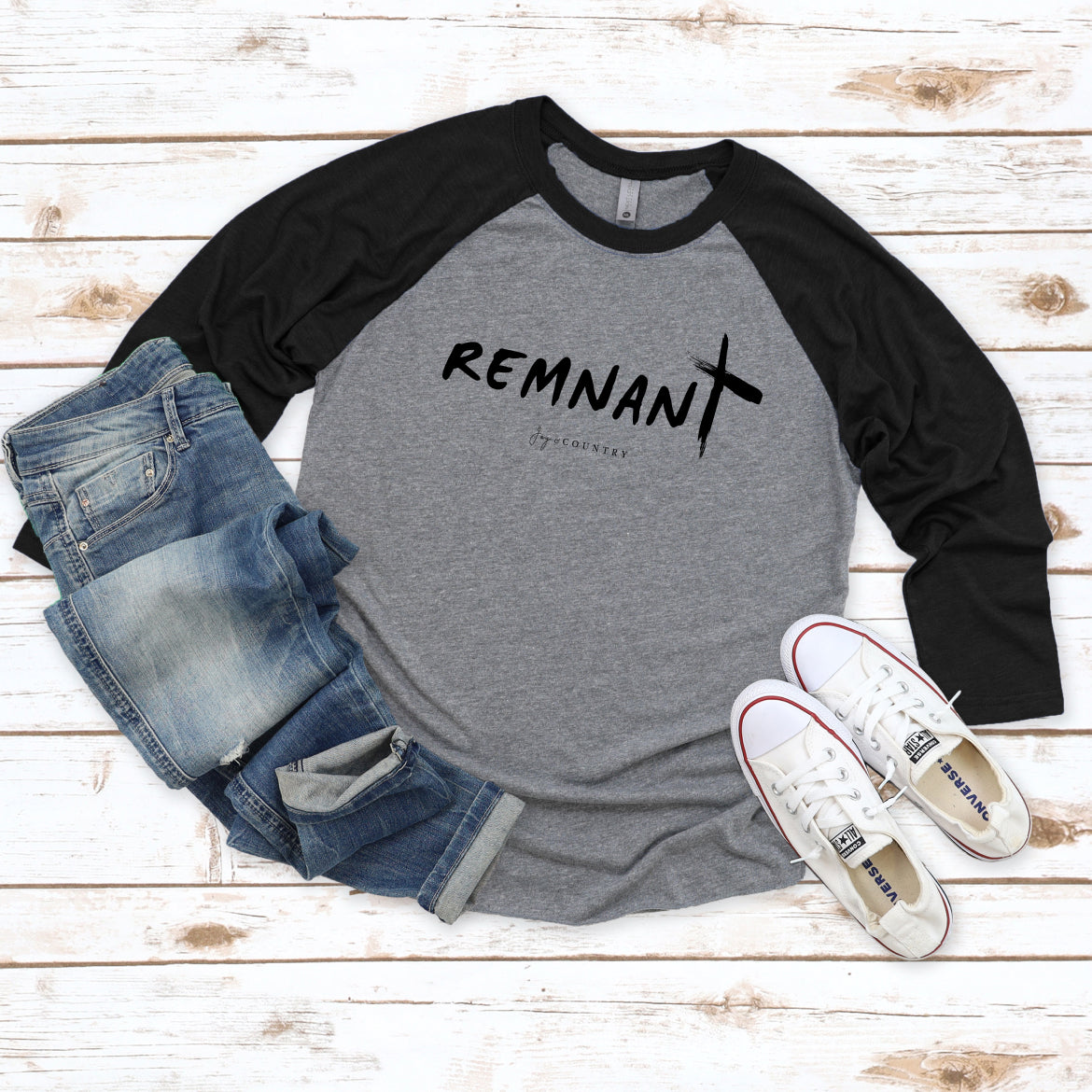 Remnant with Cross - Unisex Tri-Blend 3/4 Sleeve Raglan Tee