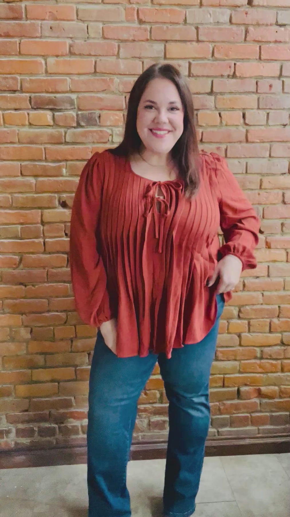 This scoop neck blouse, featuring an adorable ribbon bow, is sure to steal the show! With its lovely weight, it drapes beautifully and shows off subtle pleats and charming bubble sleeves. Whether tucked in or worn loose, it’s a delightful addition to any outfit!