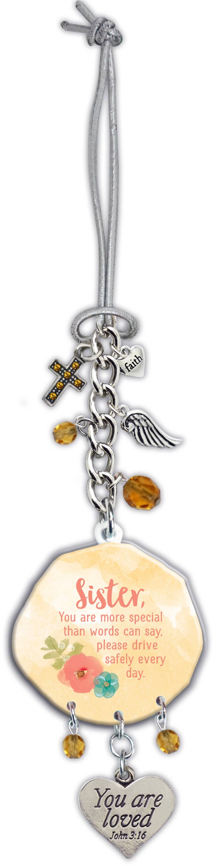 Sister You Are More Special, You Are Loved - Car Charm With Cross, Faith, & Angel Wing