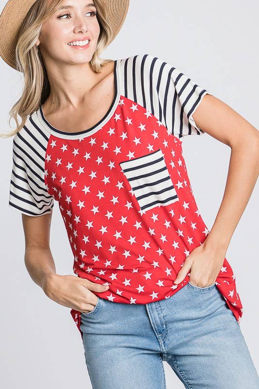 Stars And Stripes Patriotic Contrast Top - Joy & Country