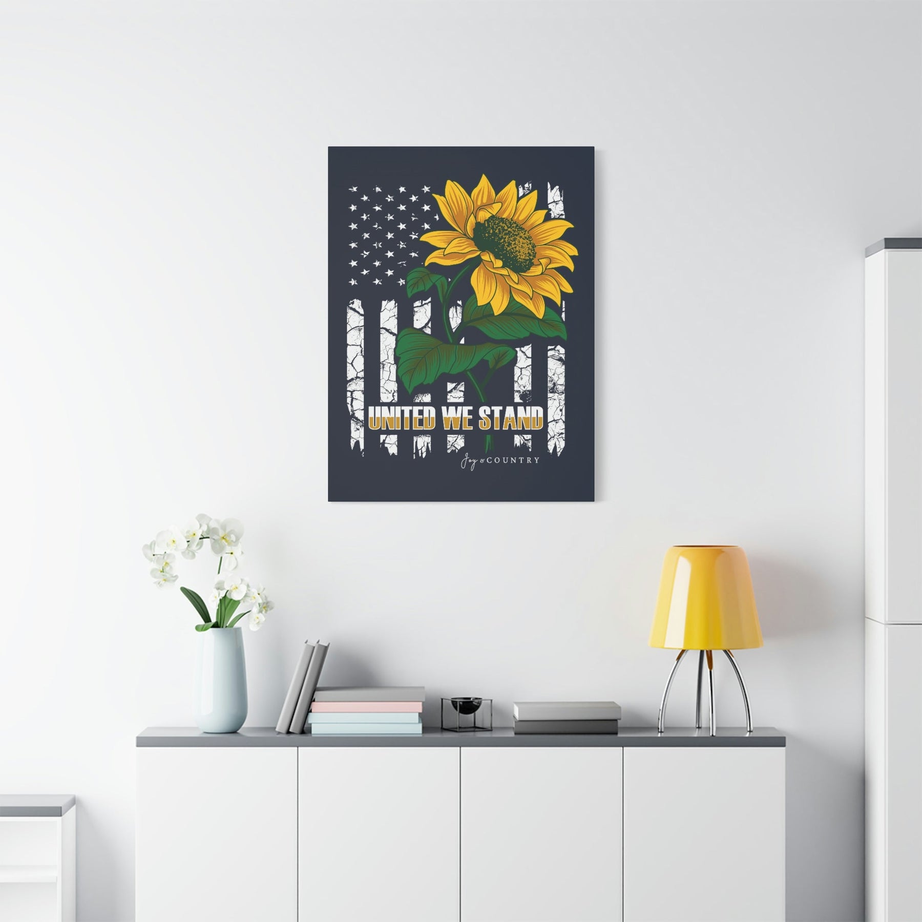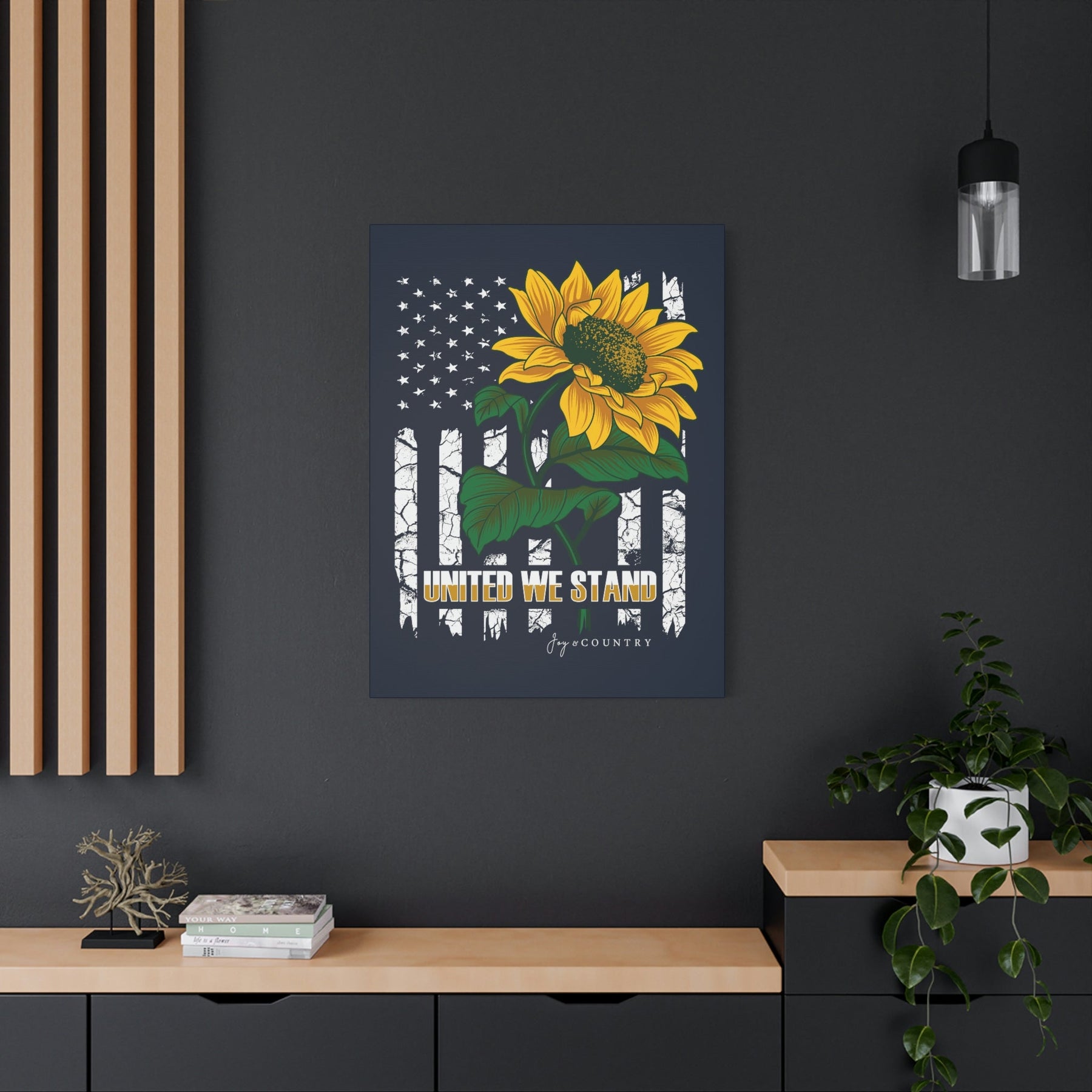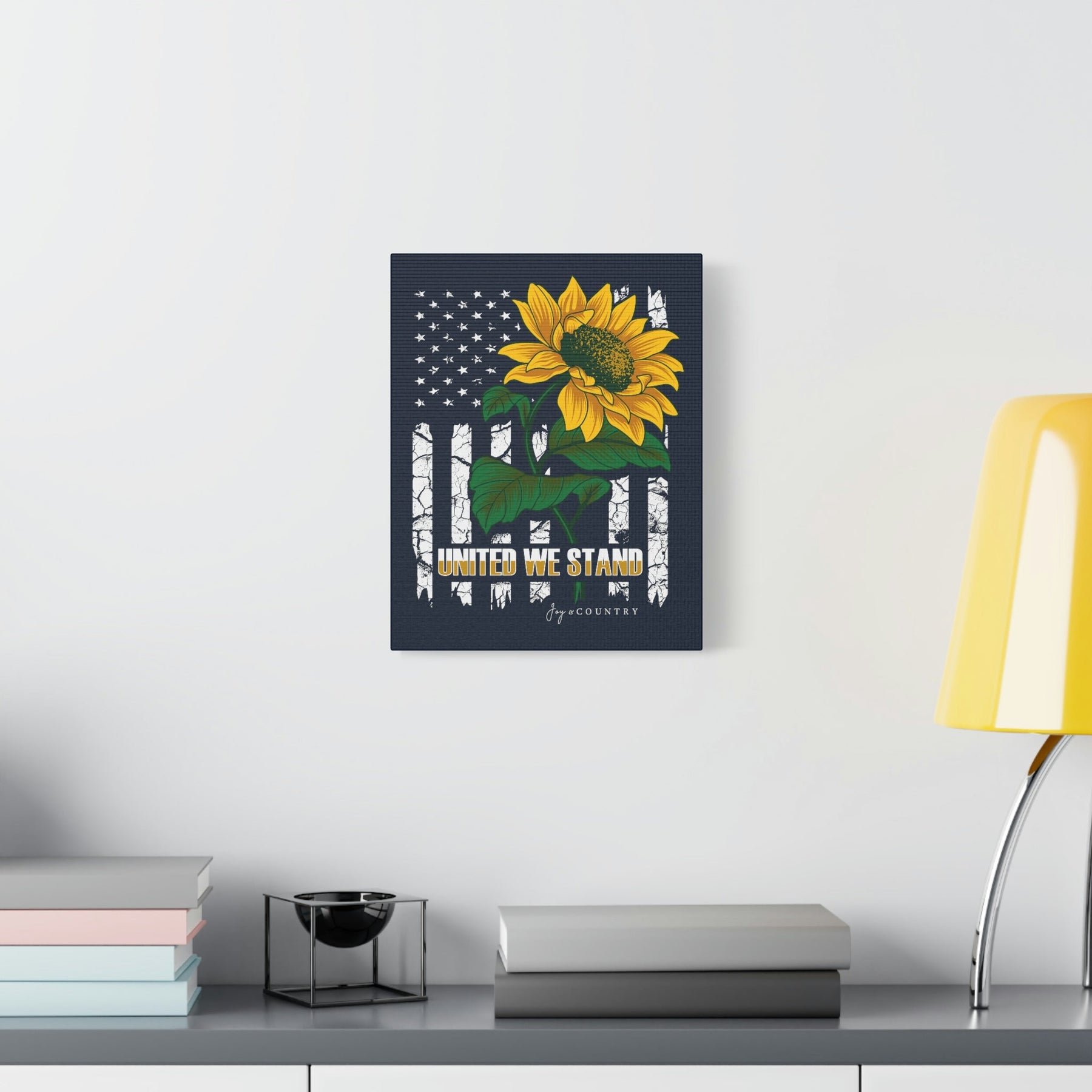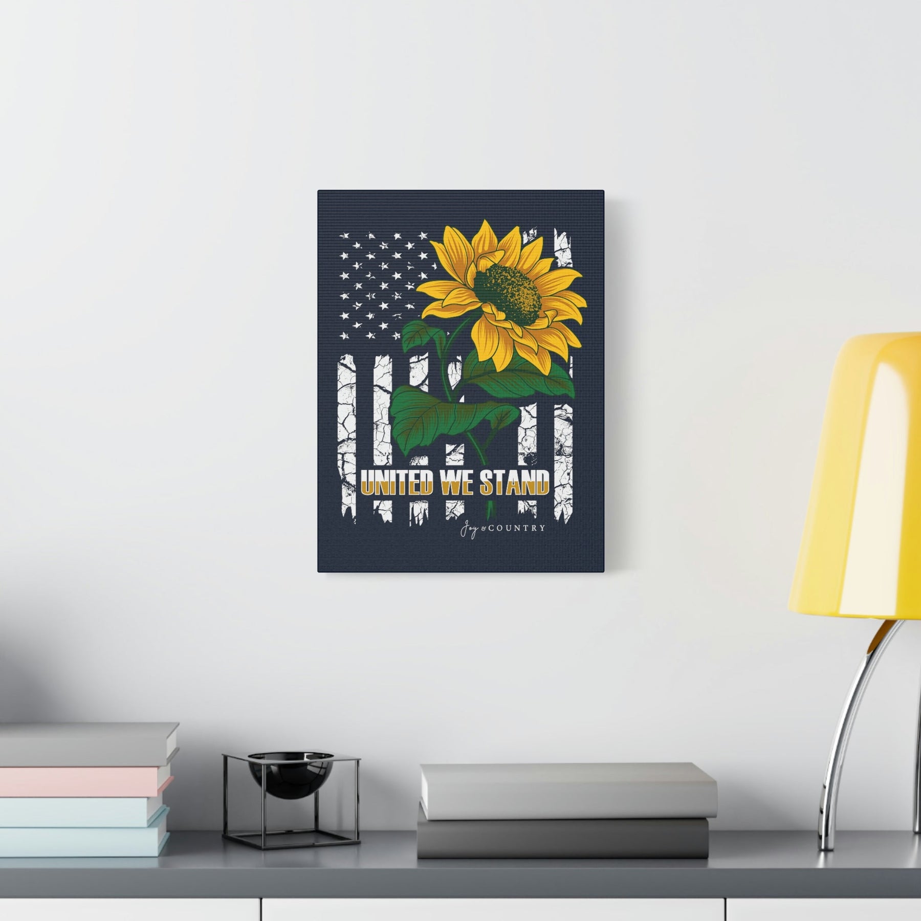 United We Stand American Flag Sunflower - Stretched, 1.25" Canvas Art   Canvas Print Joy & Country
