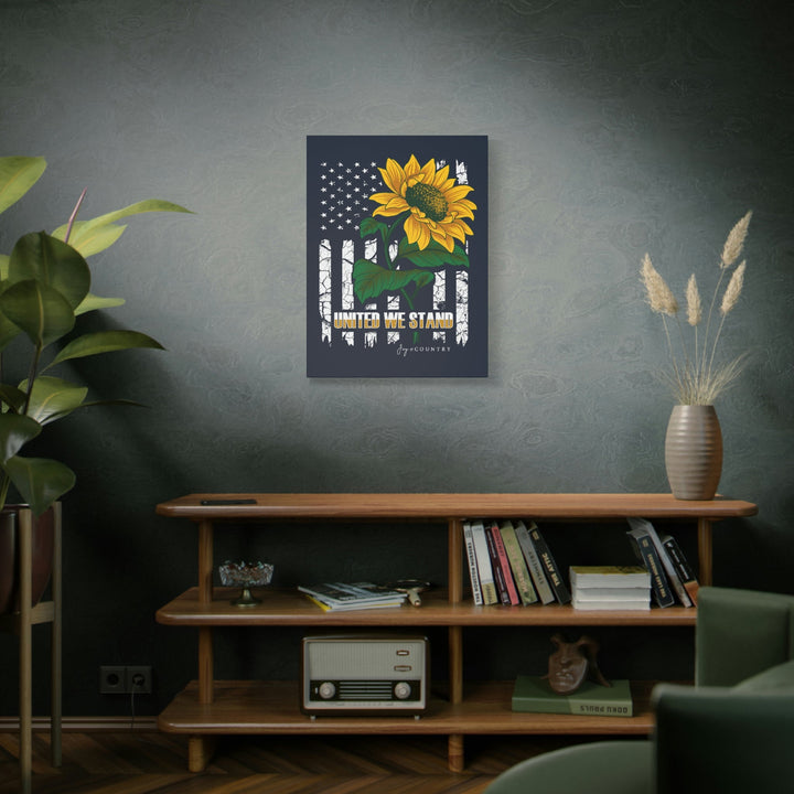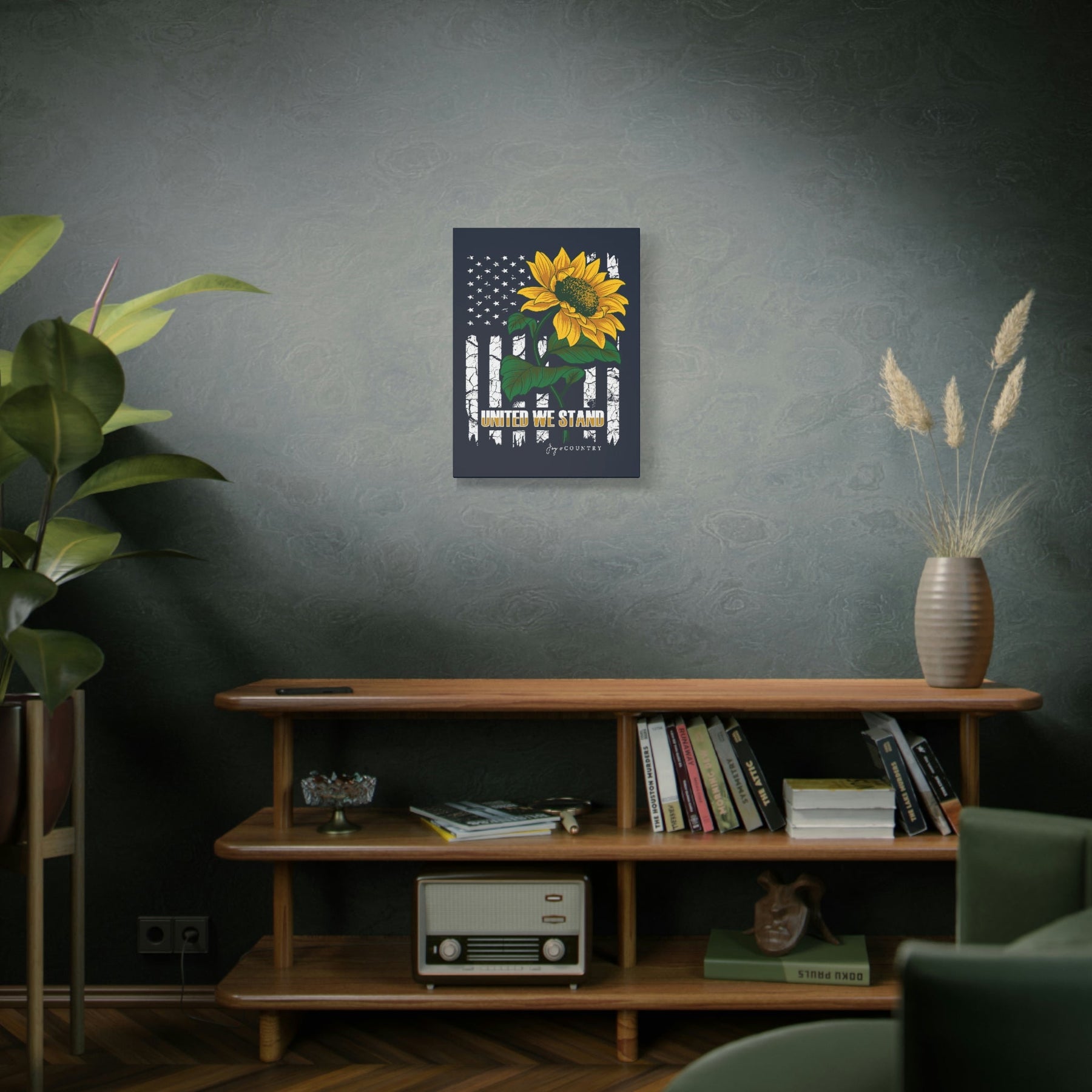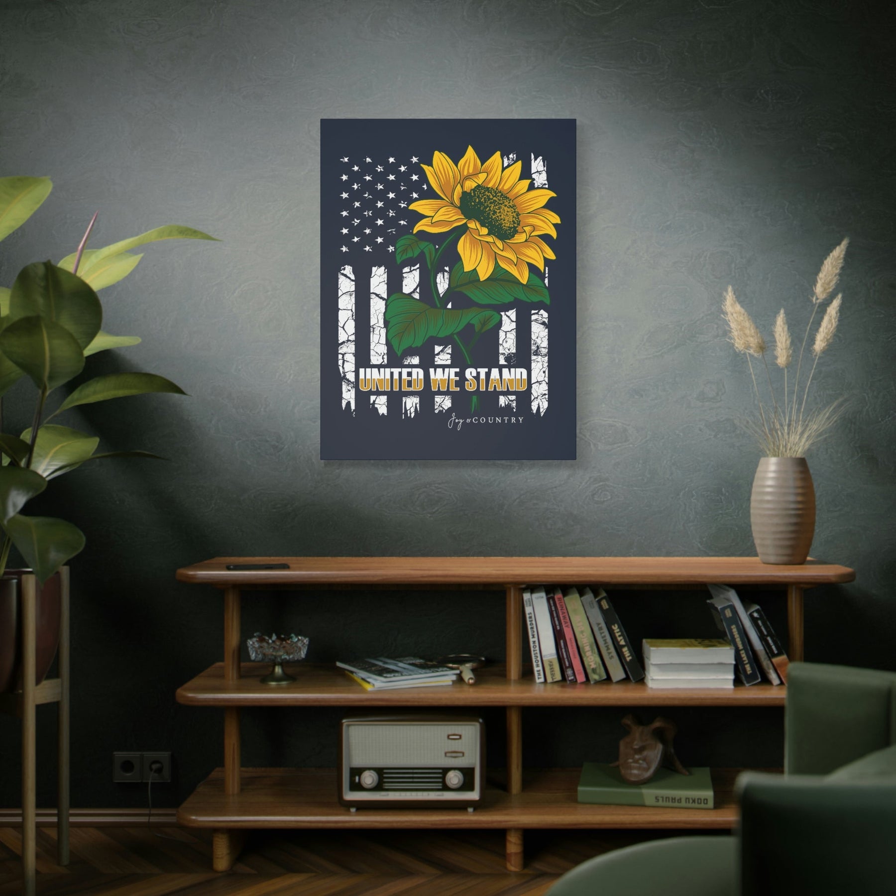 United we stand, divided we fall! This artwork reminds us that we are better united, even if we have differences. This beautiful sunflower and rugged American flag remind us to stand tall for freedom and liberty.