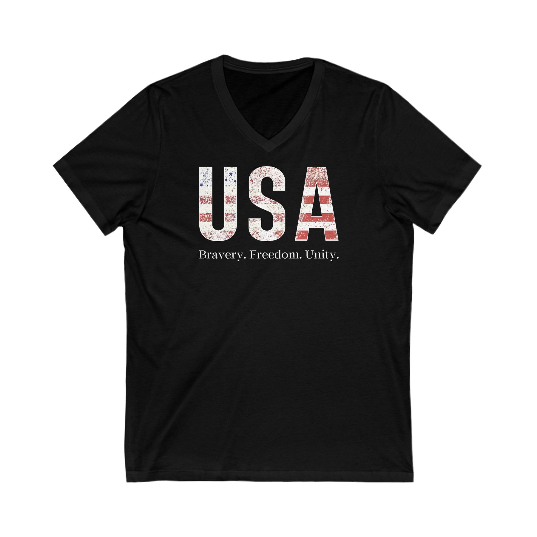 USA Bravery. Freedom. Unity - Unisex V-Neck Tee
