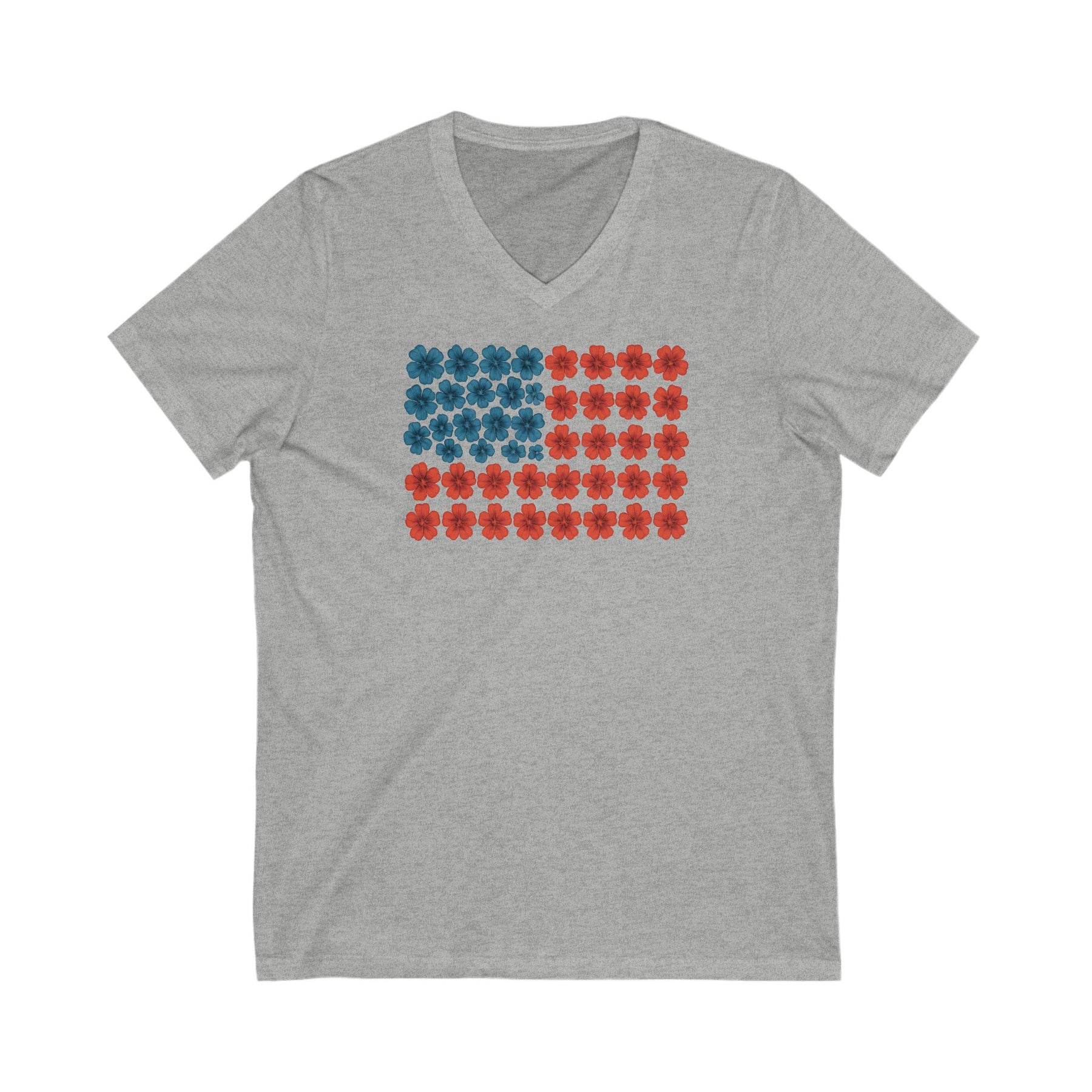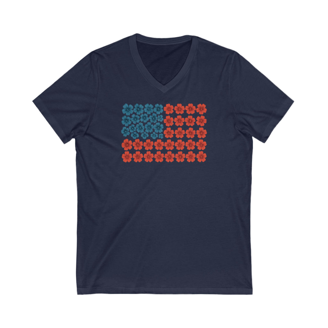 USA Flag Of Flowers - Unisex V-Neck Tee - Joy & Country