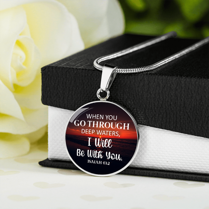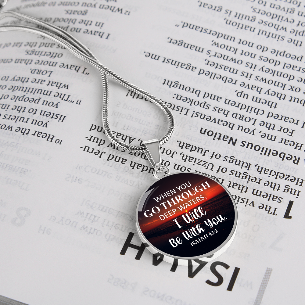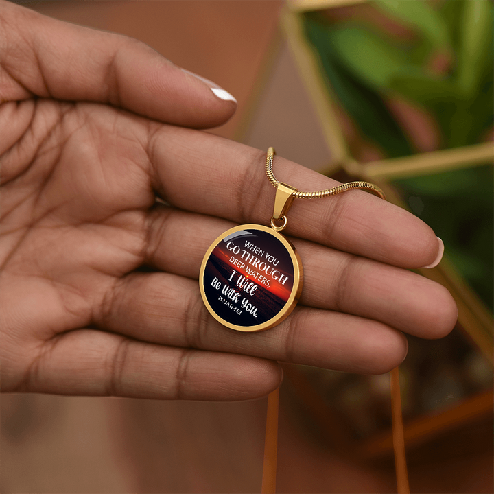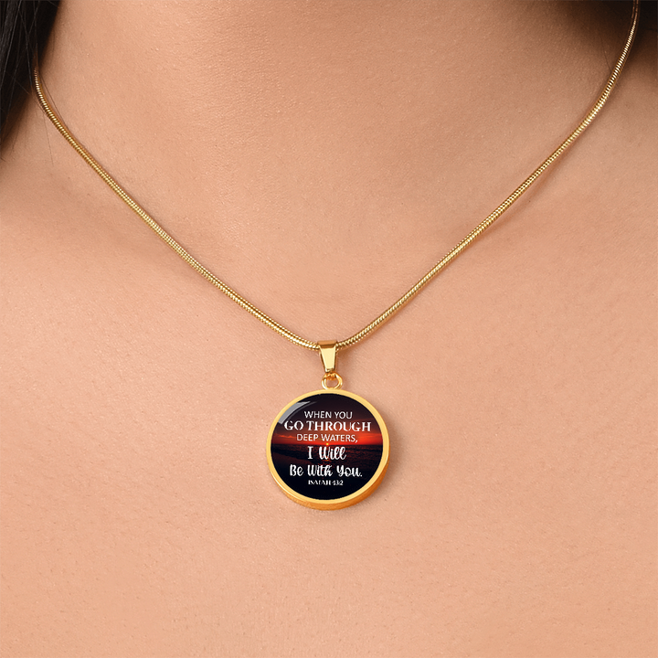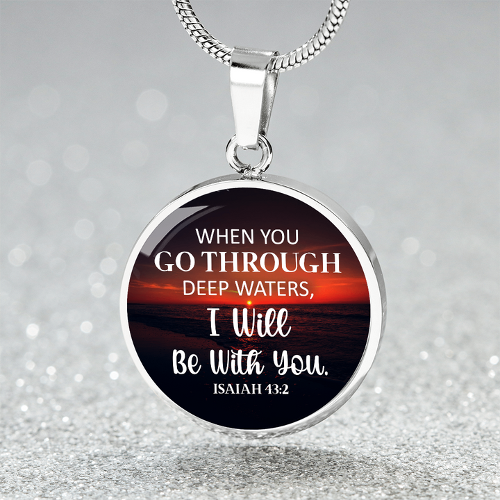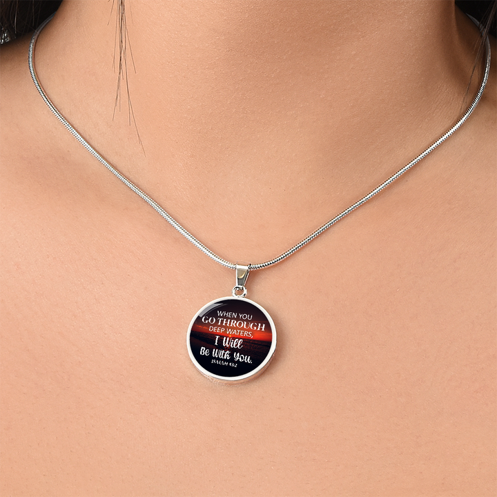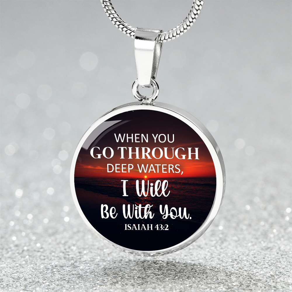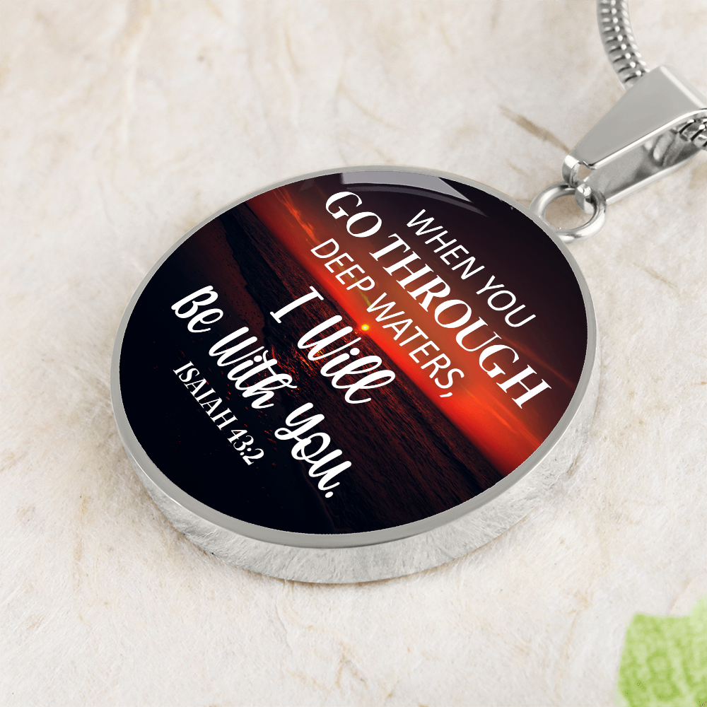 When You Go Through Deep Waters Isaiah 43:2 - Stainless Steel Circle Necklace - Engravable