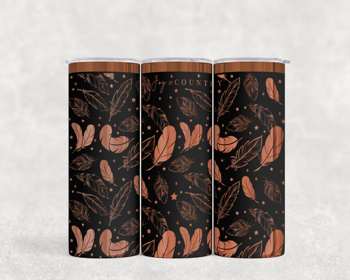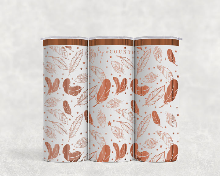 [PRE-ORDER] Whispers Of Faith Multi-Feather Design (Premium Copper) - 20 oz. Stainless Steel Laser-Engraved Skinny Tumbler [SHIPS IN 1-2 WEEKS]