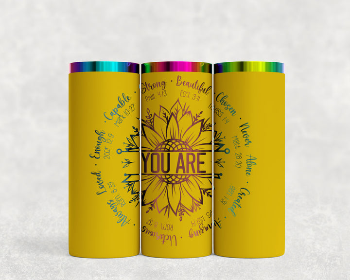 [PRE-ORDER] You Are Sunflower Encouragement Multicolor Iridescent - 20 oz. Stainless Steel Laser-Engraved Skinny Tumbler [SHIPS IN 1-2 WEEKS]